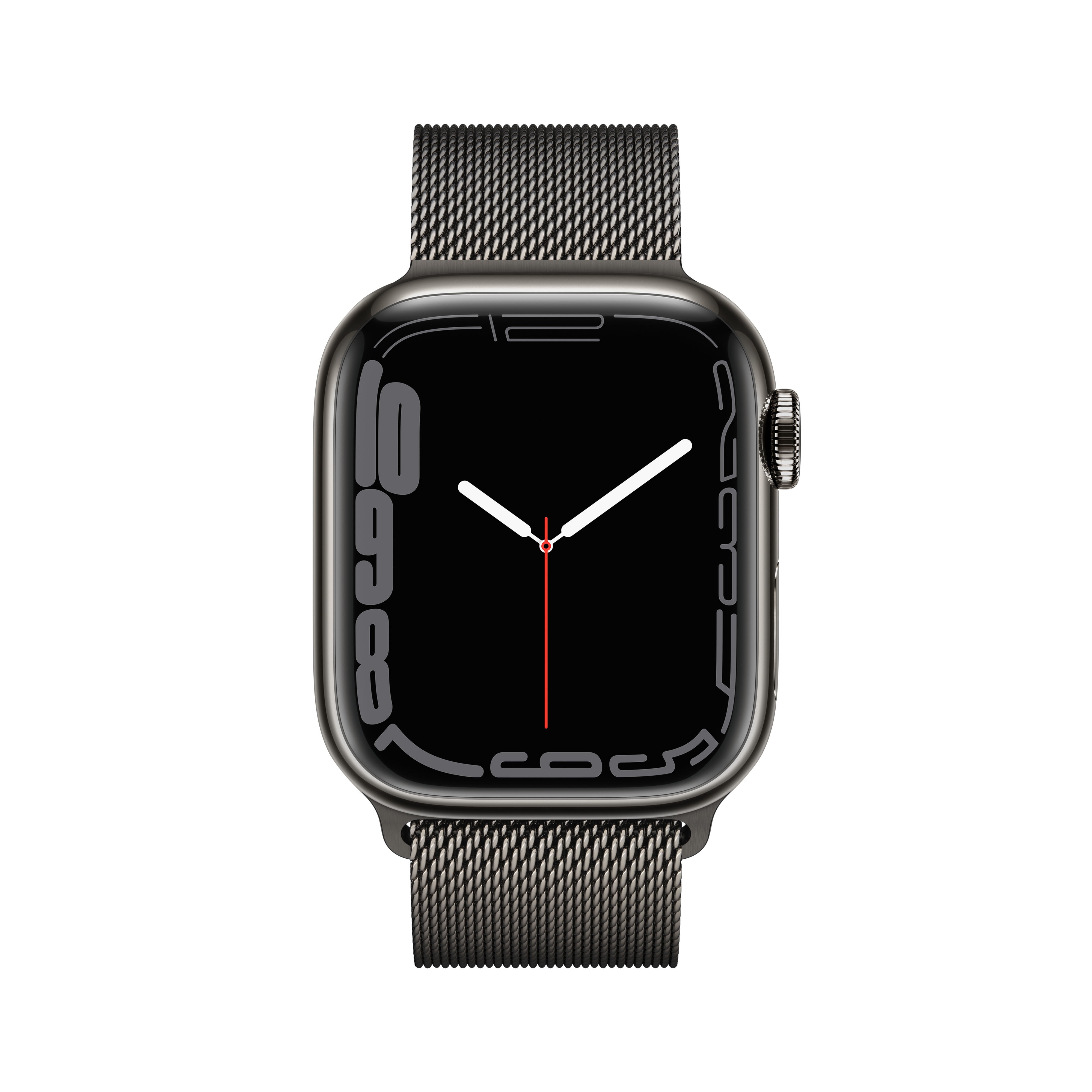 Apple Watch Series 7 GPS + Cellular, 41mm Cassa in Acciaio inossidabile Grafite con Maglia Milanese Grafite, OLED, Touch screen, 32 GB, Wi-Fi, GPS (satellitare), 42,3 g