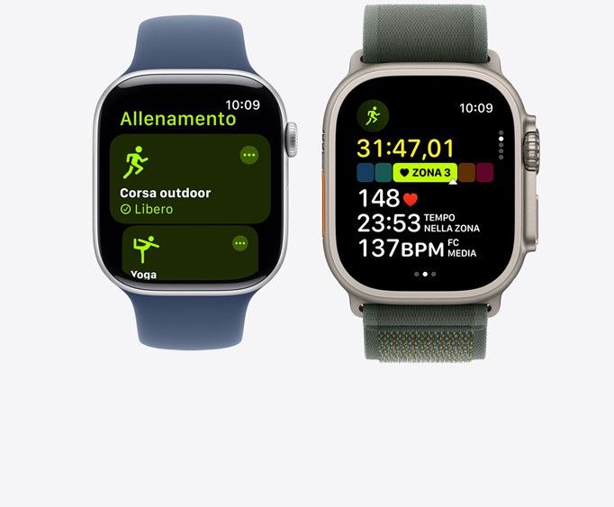 Apple Watch è ideale per fare trekking, andare in bici, correre, nuotare, fare surf e molto altro. Grazie a una versione più evoluta del profondimetro, dell’app Profondità e del sensore di temperatura dell’acqua, Apple Watch Series 10 è perfetto anche per lo snorkeling fino a 6 metri di profondità. E con Apple Watch Ultra 2 puoi fare immersioni con bombola fino a 40 metri di profondità.
