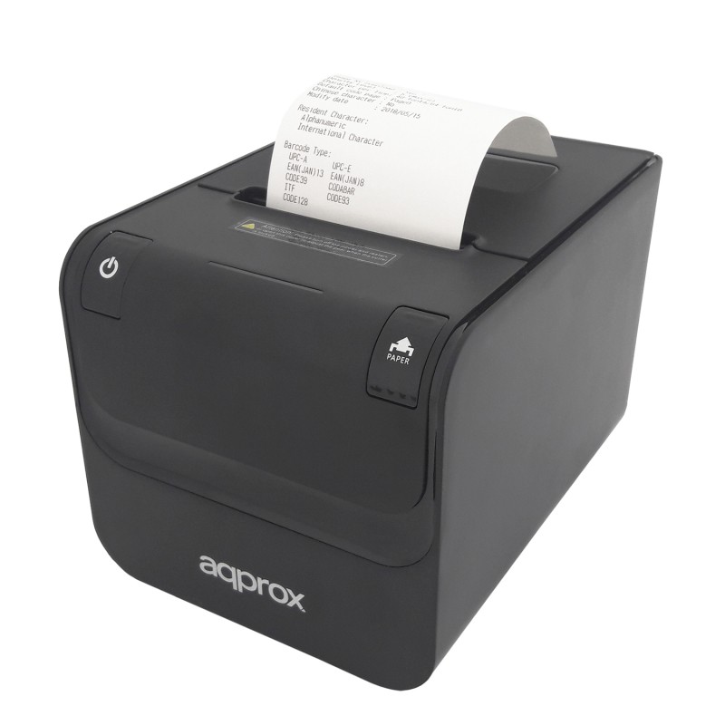 Approx appPOS80AMUSE. Tecnologia di stampa: Termica diretta, Tipo: Stampante POS, Risoluzione massima: 203 x 203 DPI. Larghezza carta supportata: 80 mm. Tecnologia di connessione: Cablato, Tipo interfaccia seriale: RJ-11, RS-232, Interfaccia standard: Ethernet, RJ-11, RS-232, USB. Codici a barre incorporati: CODABAR (NW-7), Code 128 (A/B/C), Code 39, Code 93, EAN13, EAN8, ITF, UPC-A, UPC-E, Lingue di descrizione della pagina: ESC/POS. Colore del prodotto: Nero