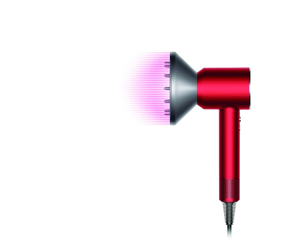 Dyson Supersonic Rosso. Velocità motore: 110000 Giri/min, Velocità di asciugatura: 5,7 g/min, Flusso d'aria: 13 l/s. Colore del prodotto: Rosso, Argento, Colorazione superficie: Monocromatico, Lunghezza cavo: 2,8 m. Potenza: 1600 W, Tensione di ingresso AC: 230 V. Larghezza: 245 mm, Profondità: 78 mm, Altezza: 97 mm. Quantità per pacco: 1 pz, Larghezza imballo: 382 mm, Profondità imballo: 219 mm