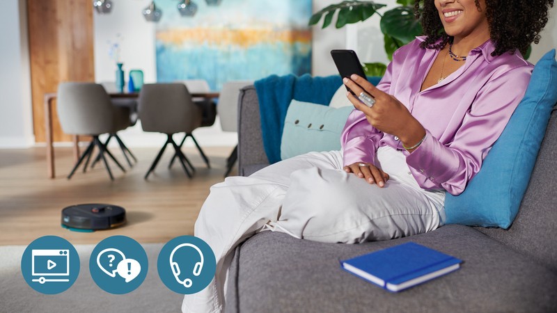 L'app HomeRun di Philips, progettata per essere intuitiva e facile da usare, comprende una guida dettagliata, nonché utili video perché tu possa sfruttare al massimo ogni caratteristica del tuo robot. L'app comunica con il robot per controllare, segnalare e analizzare le sue prestazioni di pulizia ovunque tu ti trovi, mostrandoti in tempo reale ciò che è stato pulito. Indica come vorresti che venisse pulita ogni stanza, specifica dove non vuoi che vada il robot oppure pianifica una sessione di pulizia che ti permetta di tornare a casa e trovare pavimenti immacolati.