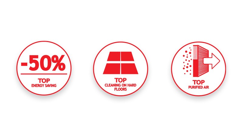 Ottima performance sui pavimenti duri, risparmiando una grande quantità di energia: fino al 50%.*