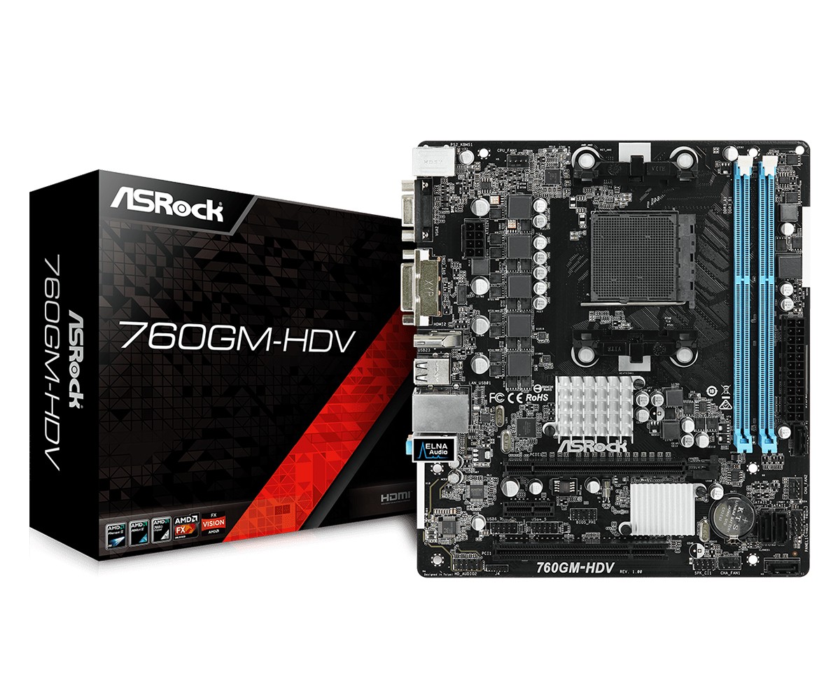 Asrock 760GM-HDV, AMD, Socket AM3+, AMD Athlon II X2,AMD Athlon II X3,AMD Athlon II X4,AMD Phenom II X2,AMD Phenom II X3,AMD Phenom II..., DDR3-SDRAM, DIMM, 1066,1333,1800 MHz