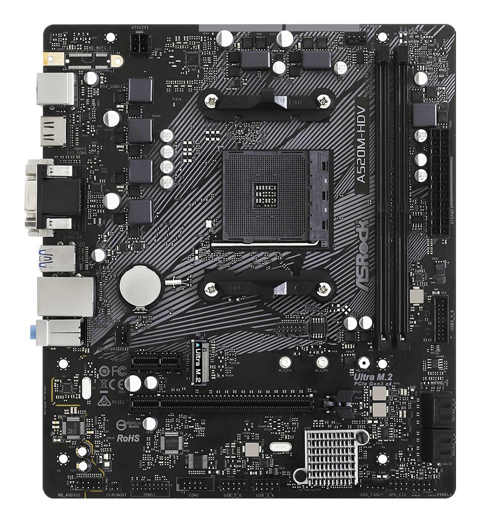Asrock A520M-HDV, AMD, Socket AM4, AMD Ryzen 3000 Series, DDR4-SDRAM, 64 GB, DIMM
