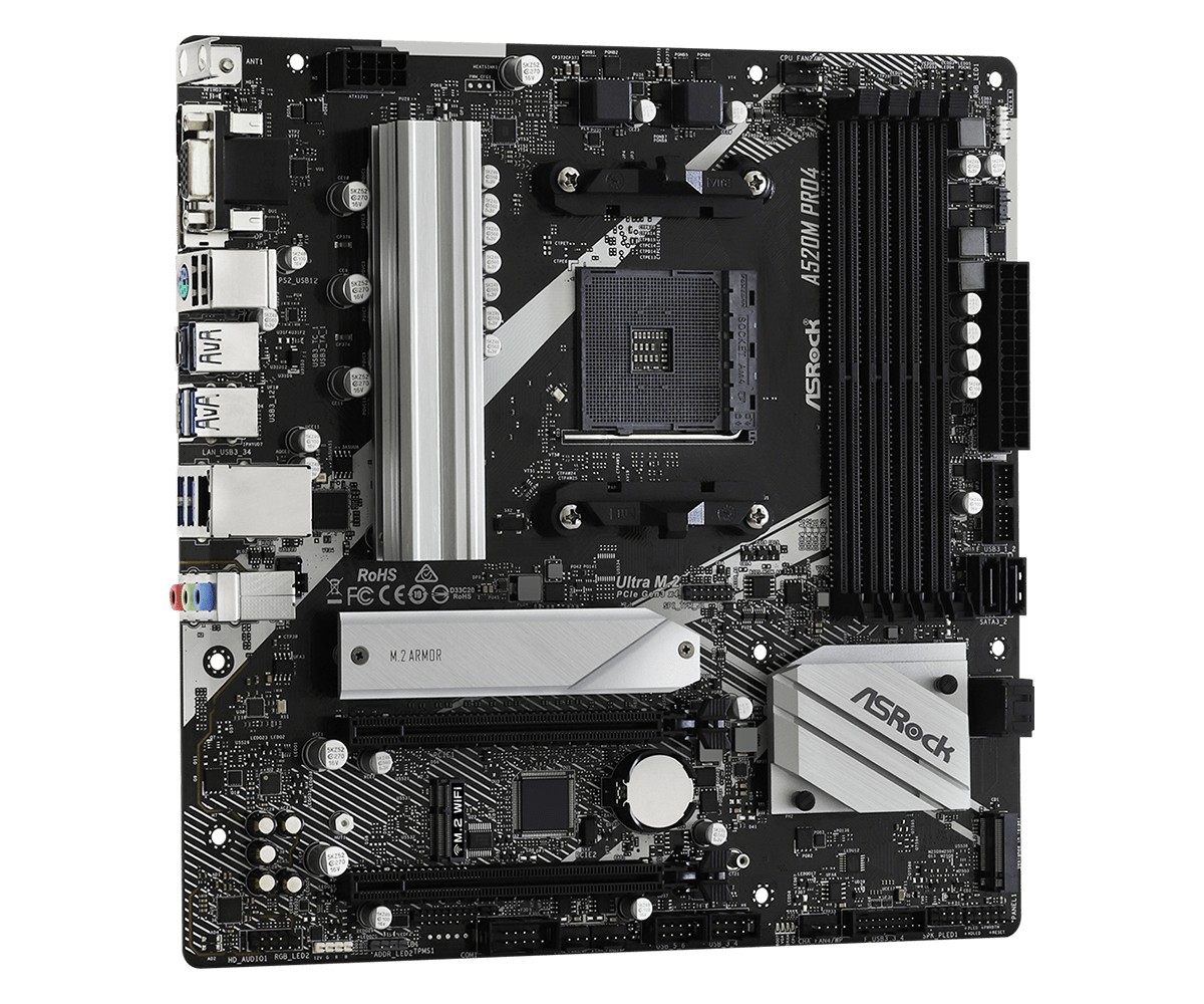 Asrock A520M Pro4. Produttore processore: AMD, Presa per processore: Socket AM4, Processori compatibili: AMD Ryzen 3000 Series. Tipi di memoria supportati: DDR4-SDRAM, RAM massima supportata: 64 GB, tipo di slot di memoria: DIMM. Interfacce dell'unità di archiviazione supportate: M.2, SATA III. Famiglia della scheda grafica: AMD, Adattatore grafico: Radeon Vega. Tipo di interfaccia Ethernet: Gigabit Ethernet, Controller LAN: Realtek RTL8111H