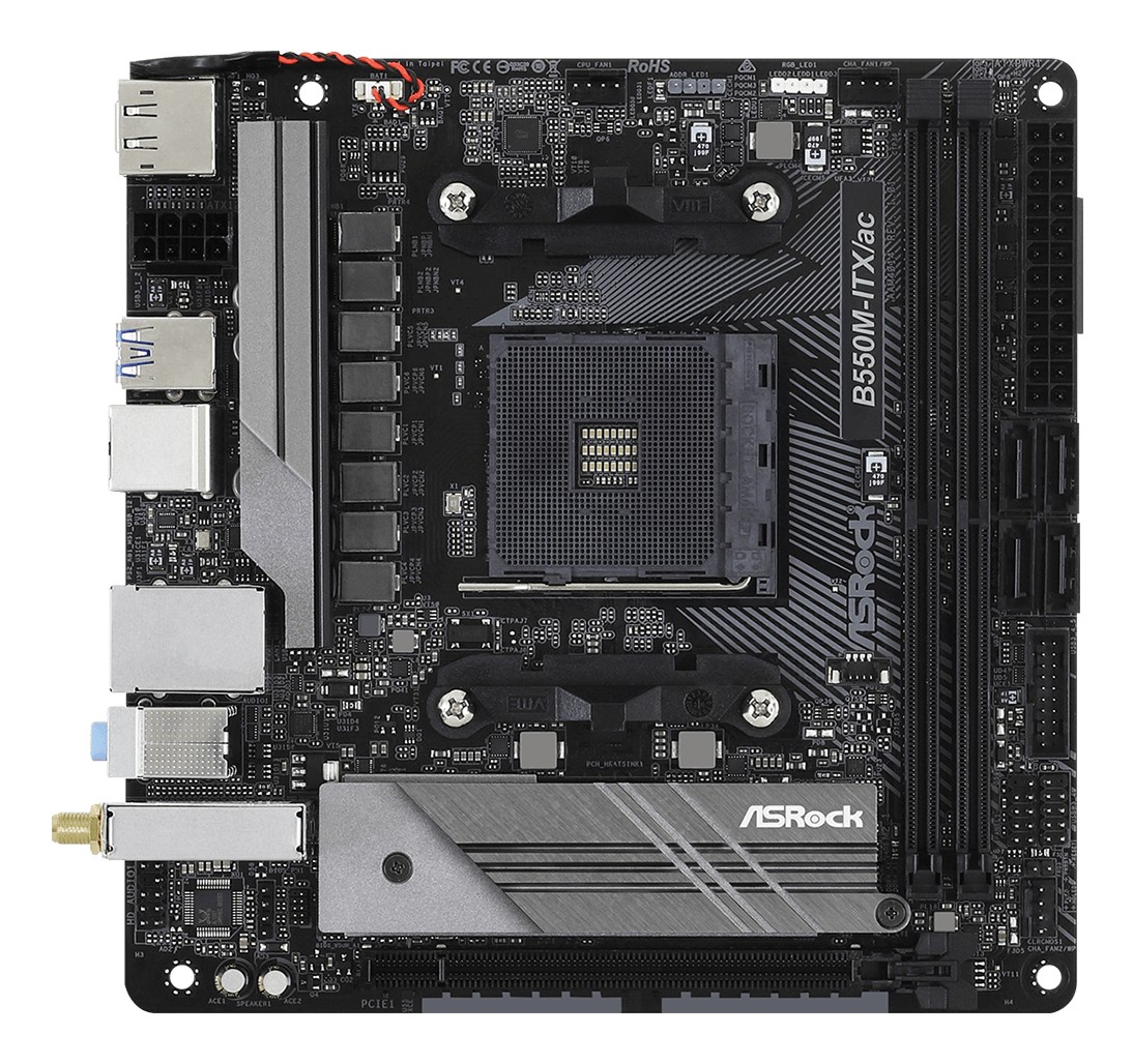 Asrock B550M-ITX/ac, AMD, Socket AM4, AMD Ryzen 3000 Series, DDR4-SDRAM, 64 GB, DIMM