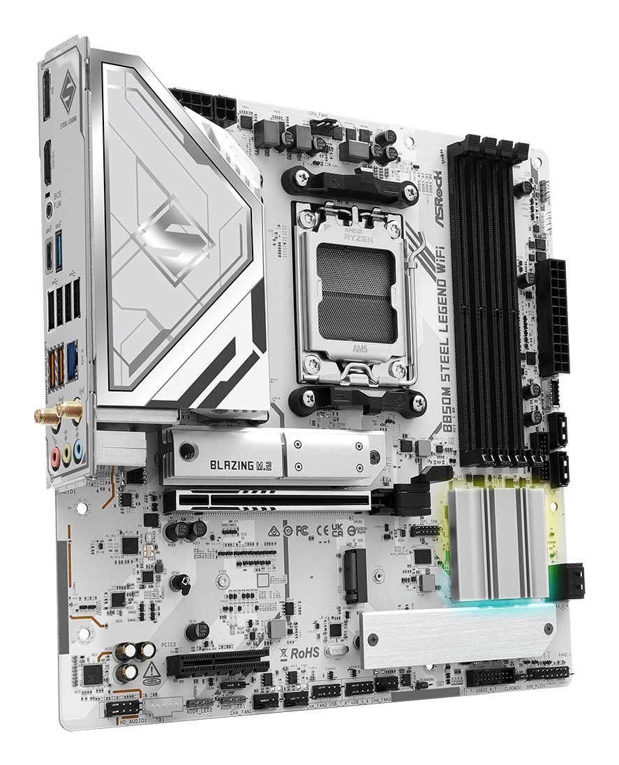 Asrock B850M Steel Legend WiFi, AMD, Socket AM5, AMD Ryzen 7000 Series, AMD Ryzen 8000 Series, AMD Ryzen 9000 Series, Socket AM5, DDR5-SDRAM, 256 GB