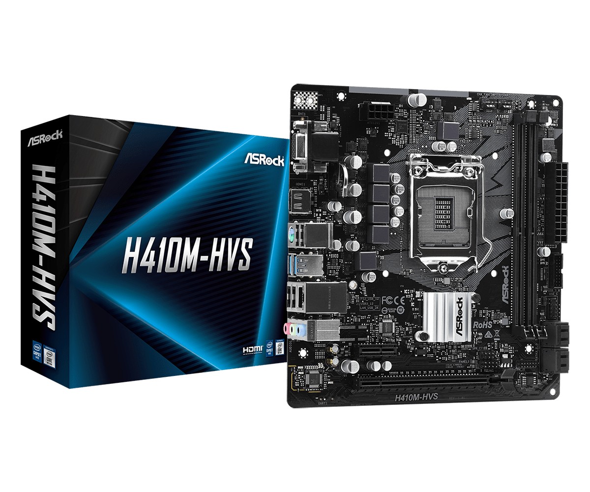 Asrock H410M-HVS, Intel, LGA 1200, Intel® Celeron®, Intel® Core™ i3, Intel Core i5, Intel Core i7, Intel Core i9, Intel® Pentium®, DDR4-SDRAM, DIMM, 2133,2400,2666,2800,2933 MHz