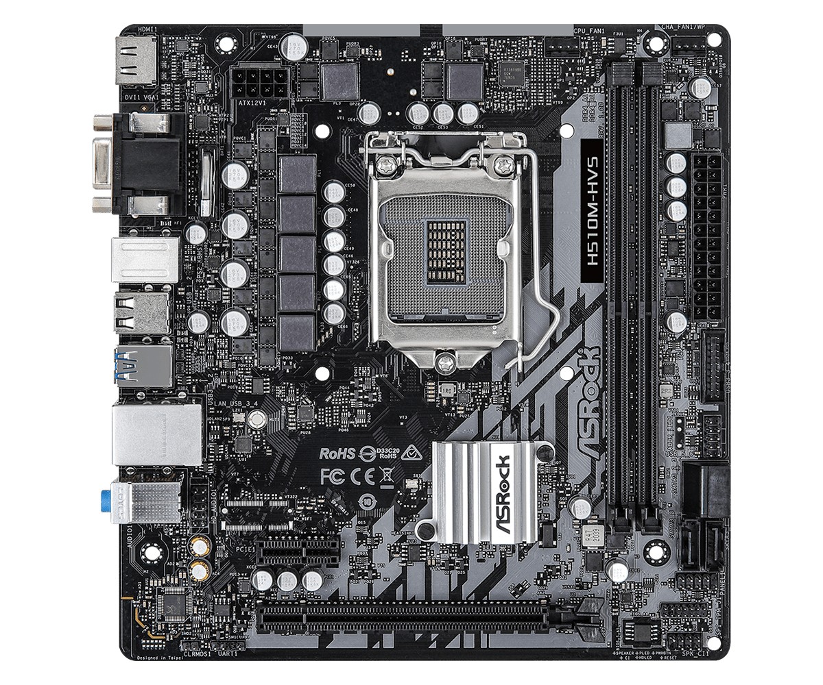 Asrock H510M-HVS, Intel, LGA 1200 (Socket H5), Intel® Celeron®, Intel® Core™ i3, Intel® Core™ i5, Intel® Core™ i7, Intel® Core™ i7..., LGA 1200 (Socket H5), DDR4-SDRAM, 64 GB