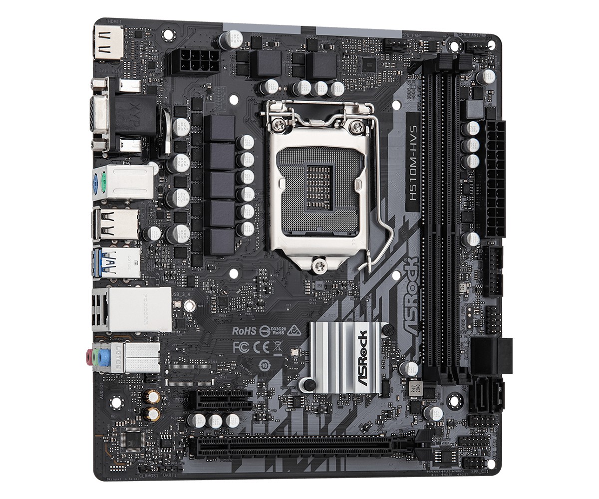 Asrock H510M-HVS R2.0, Intel, LGA 1200, Intel® Celeron®, Intel® Core™ i3, Intel® Core™ i5, Intel® Core™ i7, Intel® Core™ i9, Intel® Pentium®, DDR4-SDRAM, 64 GB, DIMM