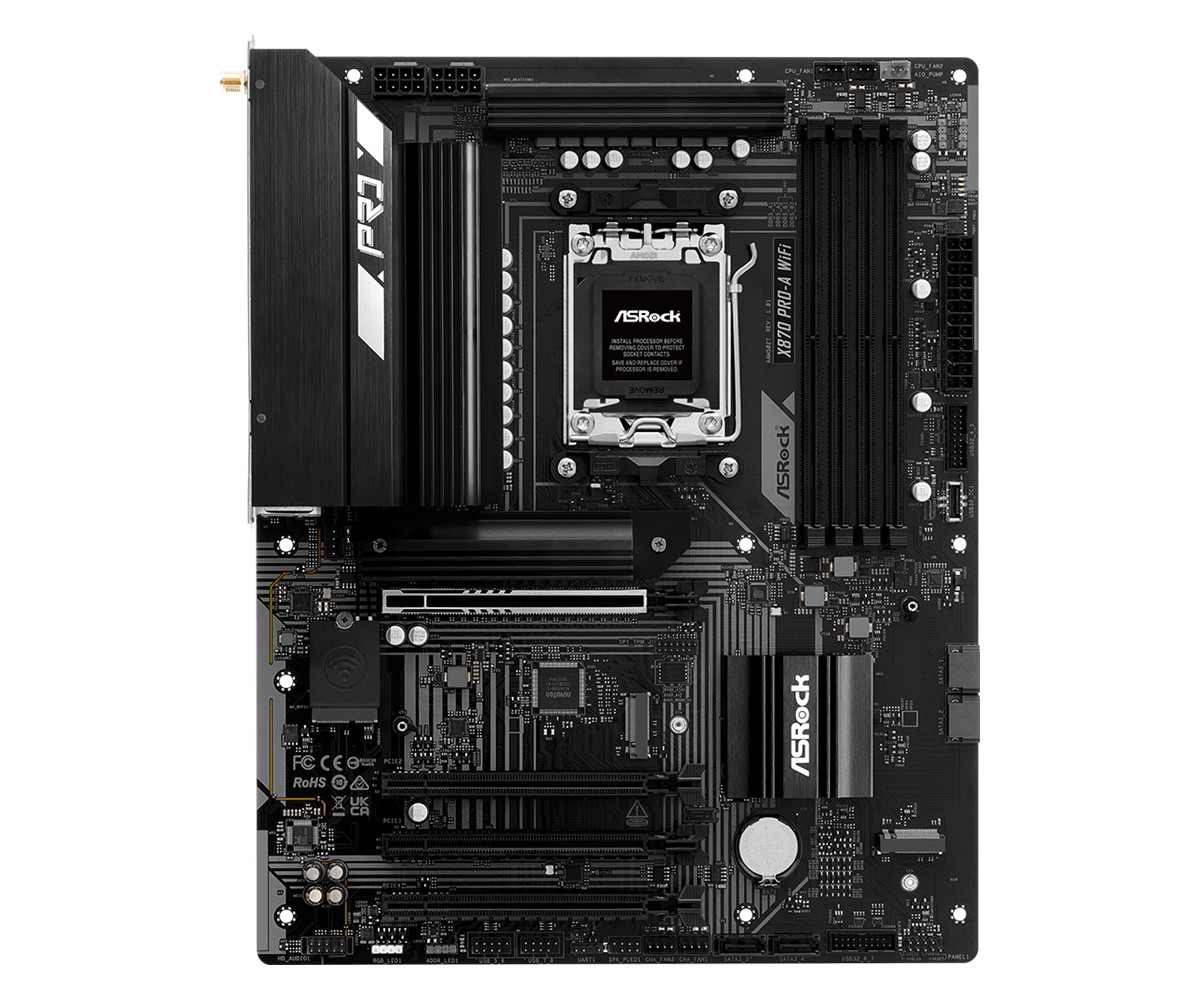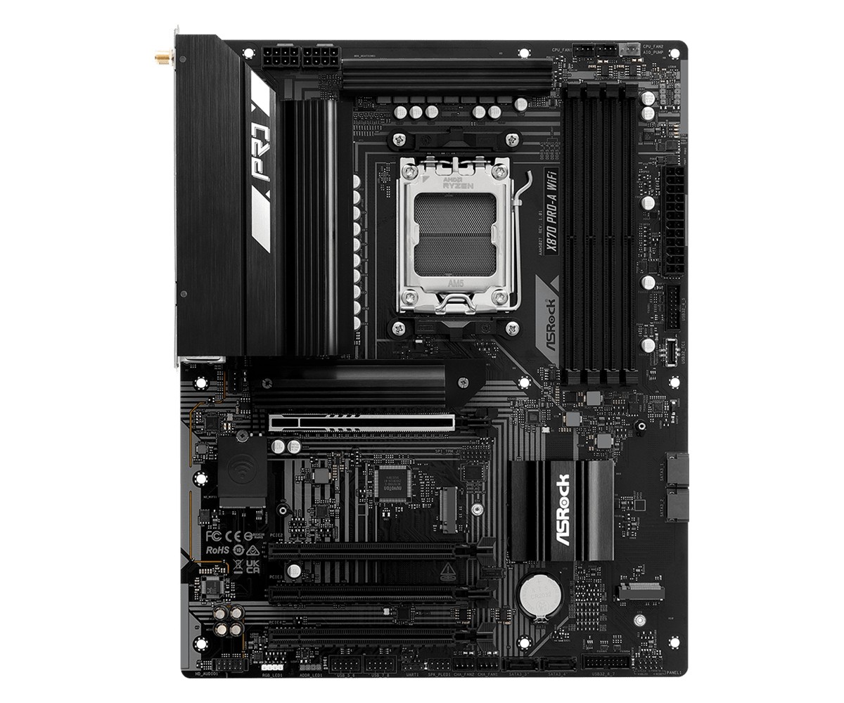 Asrock X870 Pro-A WiFi, AMD, Socket AM5, AMD Ryzen 6000 Series, AMD Ryzen 7000 Series, AMD Ryzen 8000 Series, AMD Ryzen 9000 Series, AMD..., DDR5-SDRAM, 256 GB, DIMM