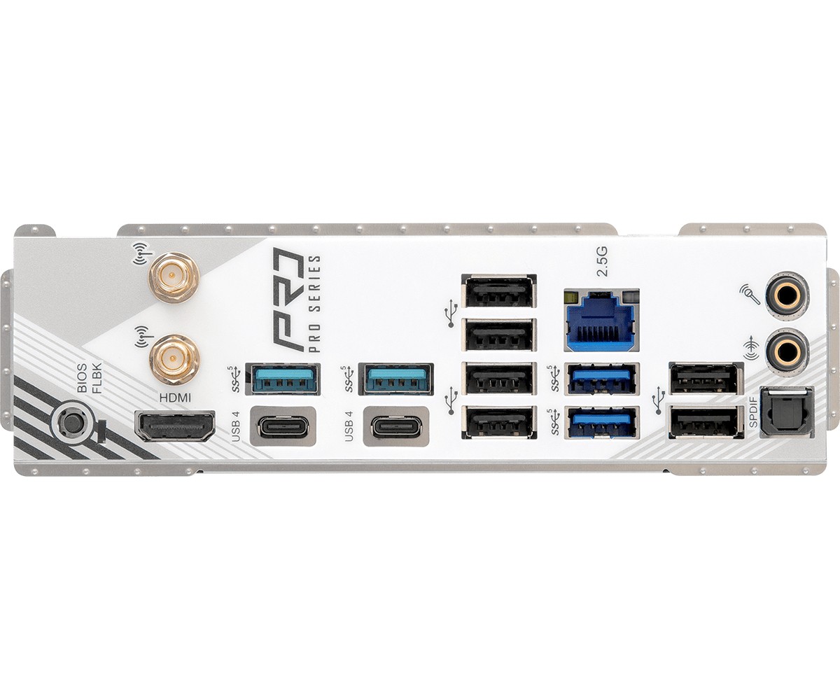 Asrock X870 Pro RS WiFi. Produttore processore: AMD, Presa per processore: Socket AM5, Processori compatibili: AMD Ryzen 7000 Series, AMD Ryzen 8000 Series, AMD Ryzen 9000 Series. Tipi di memoria supportati: DDR5-SDRAM, RAM massima supportata: 256 GB, tipo di slot di memoria: DIMM. Interfacce dell'unità di archiviazione supportate: M.2, SATA III, Tipi di unità di archiviazione supportate: HDD & SSD, Livelli RAID: 0, 1. Tecnologia di processo parallela: CrossFire. Tipo di interfaccia Ethernet: 2.5 Gigabit Ethernet, Controller LAN: Dragon RTL8125BG, Wi-Fi standard: Wi-Fi 7 (802.11be)