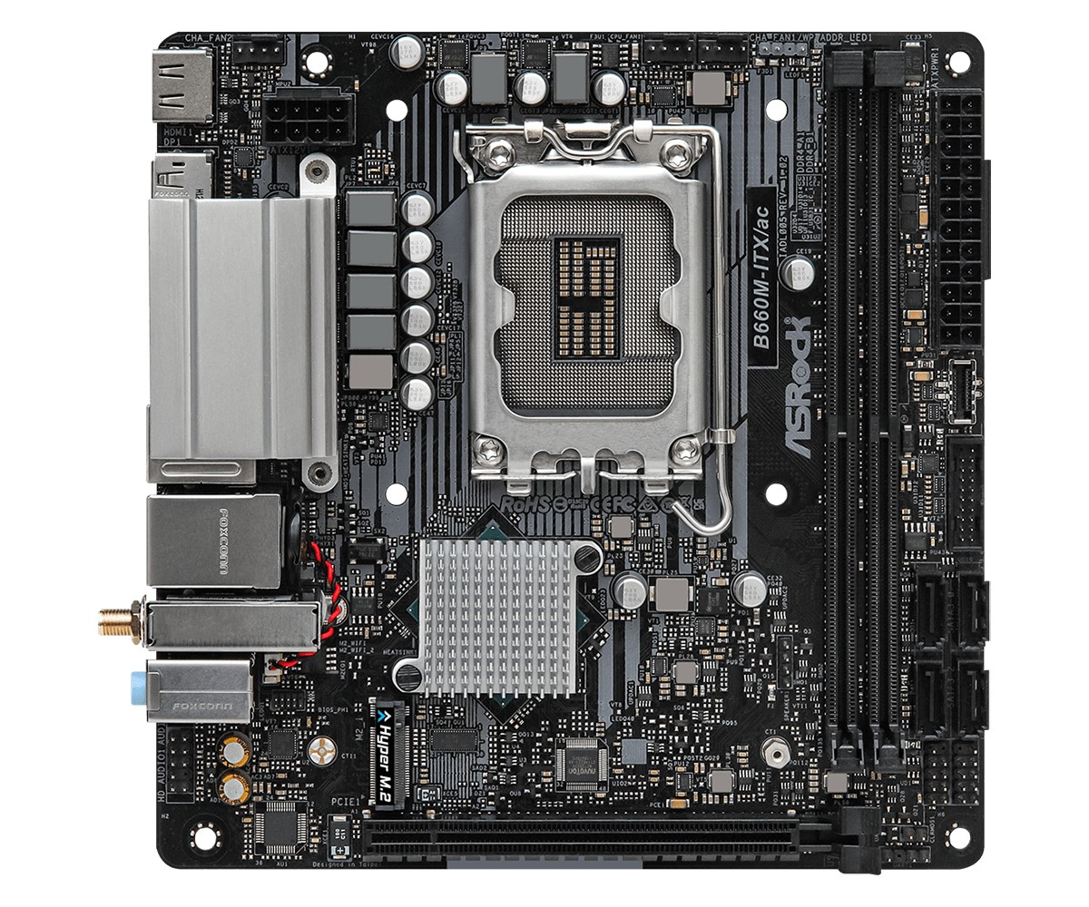 Asrock B660M-ITX/ac, Intel, LGA 1700, Intel® Celeron®, Intel® Core™ i3, Intel® Core™ i5, Intel® Core™ i7, Intel® Core™ i9, Intel® Pentium®, DDR4-SDRAM, 64 GB, DIMM