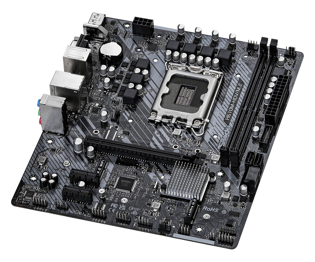 Asrock H610M-HDV/M.2. Produttore processore: Intel, Presa per processore: LGA 1700, Processori compatibili: Intel® Celeron®, Intel® Core™ i3, Intel® Core™ i5, Intel® Core™ i7, Intel® Core™ i9, Intel® Pentium®. Tipi di memoria supportati: DDR4-SDRAM, RAM massima supportata: 64 GB, tipo di slot di memoria: DIMM. Interfacce dell'unità di archiviazione supportate: M.2, SATA III, Tipi di unità di archiviazione supportate: HDD & SSD, Livelli RAID: 0, 1, 5, 10. Risoluzione massima: 7680 x 4320 Pixel. Tipo di interfaccia Ethernet: Gigabit Ethernet, Controller LAN: Intel® I219-V