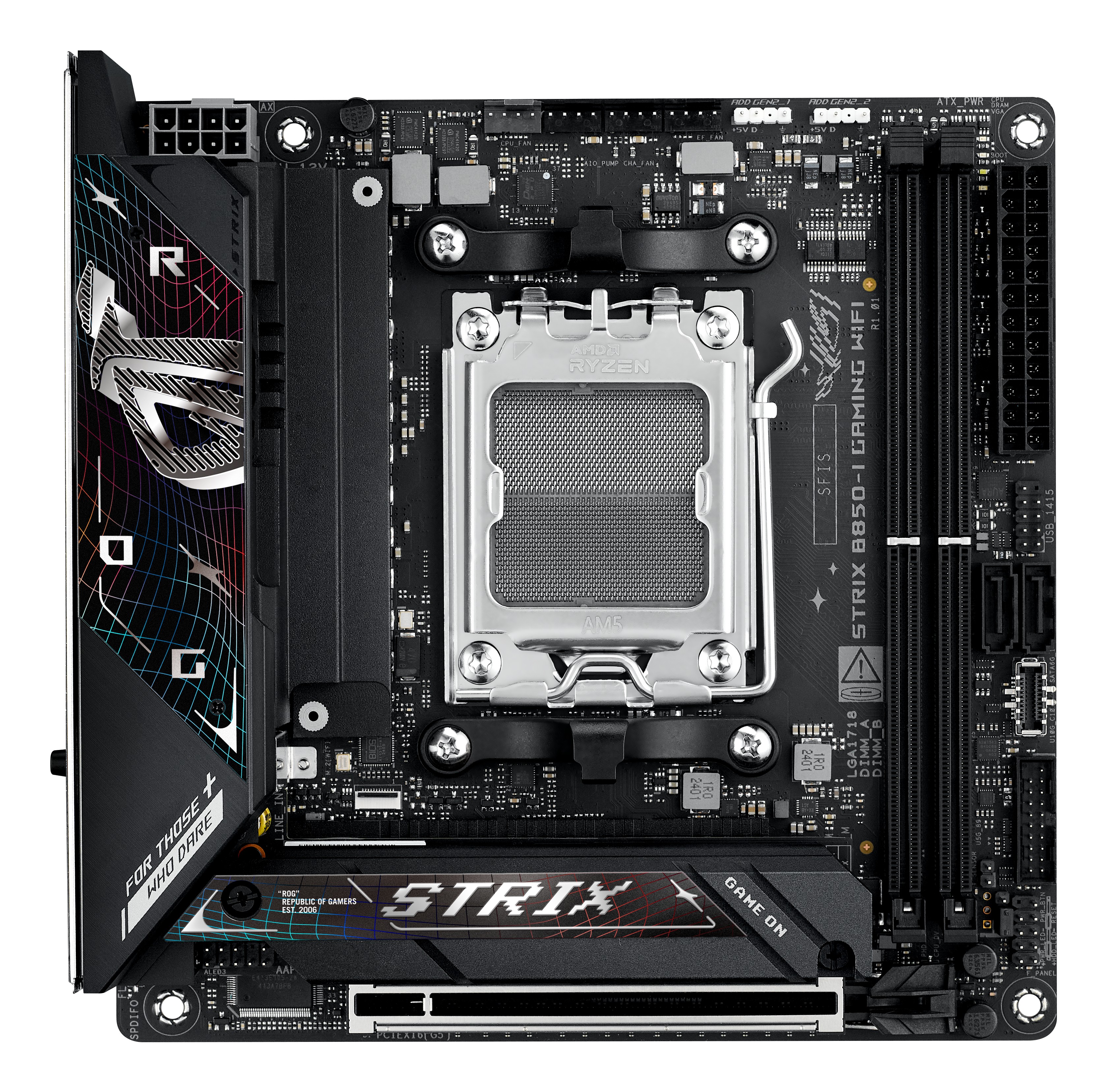 ASUS ROG STRIX B850-I GAMING WIFI, AMD, Socket AM5, AMD Ryzen 7000 Series, AMD Ryzen 8000 Series, AMD Ryzen 9000 Series, Socket AM5, DDR5-SDRAM, 96 GB
