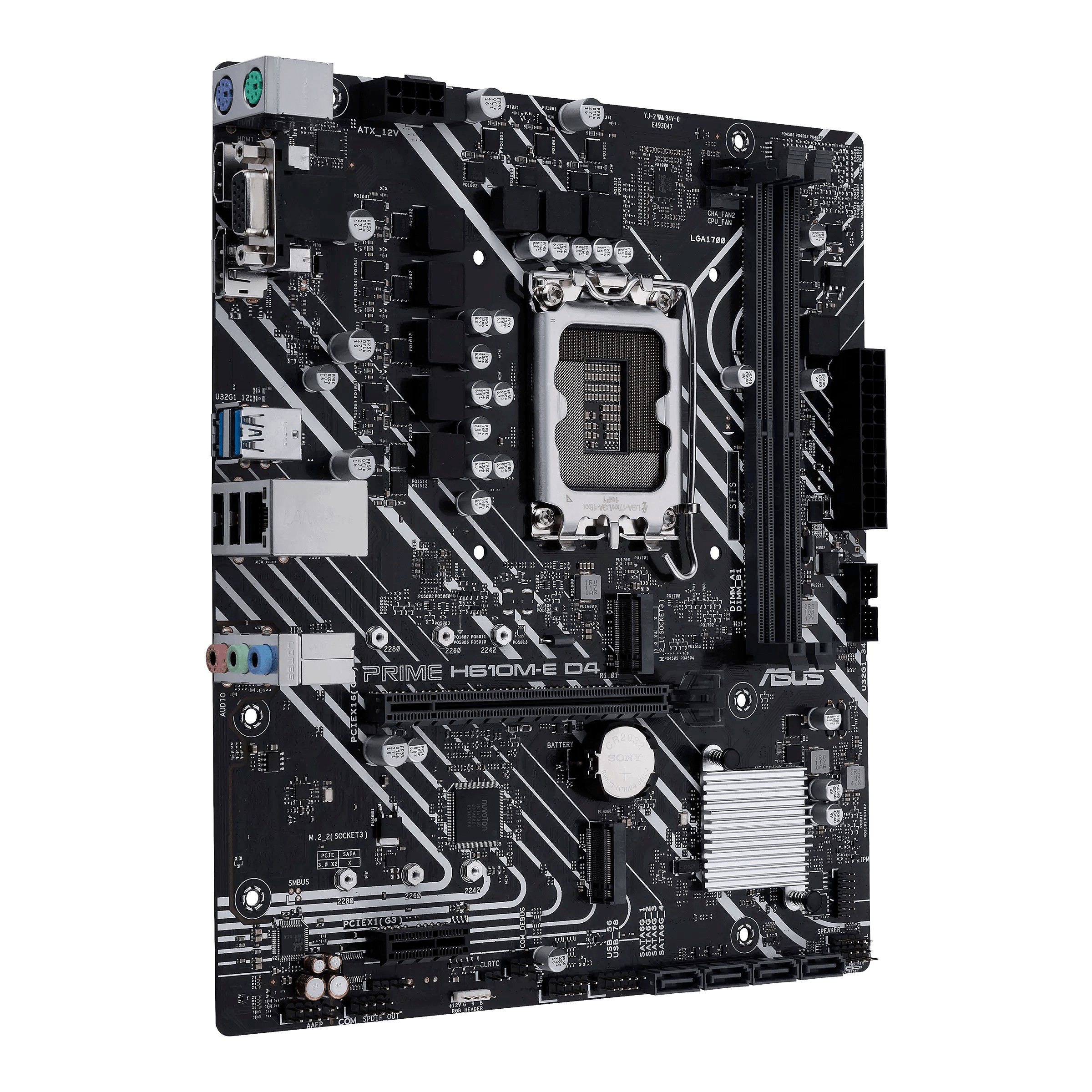 ASUS PRIME H610M-E D4-CSM, Intel, LGA 1700, Intel® Celeron®, Intel® Core™ i3, Intel® Core™ i5, Intel® Core™ i7, Intel® Core™ i9, Intel® Pentium®, DDR4-SDRAM, 64 GB, DIMM