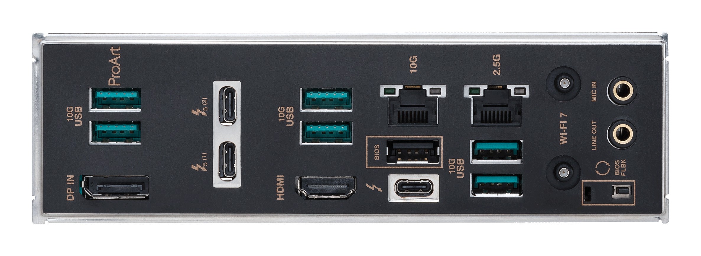 ProArt Z890-CREATOR WIFI consente ai creatori di tutti i livelli di massimizzare le prestazioni dei più recenti processori Intel® Core™ Ultra Processor (Series 2) con stadi di potenza a 16+1+2+2 team, slot DDR5, PCIe® 5.0 e connettività fulminea che include due porte Thunderbolt™ 5, Ethernet 10G e 2,5G e WiFi 7.