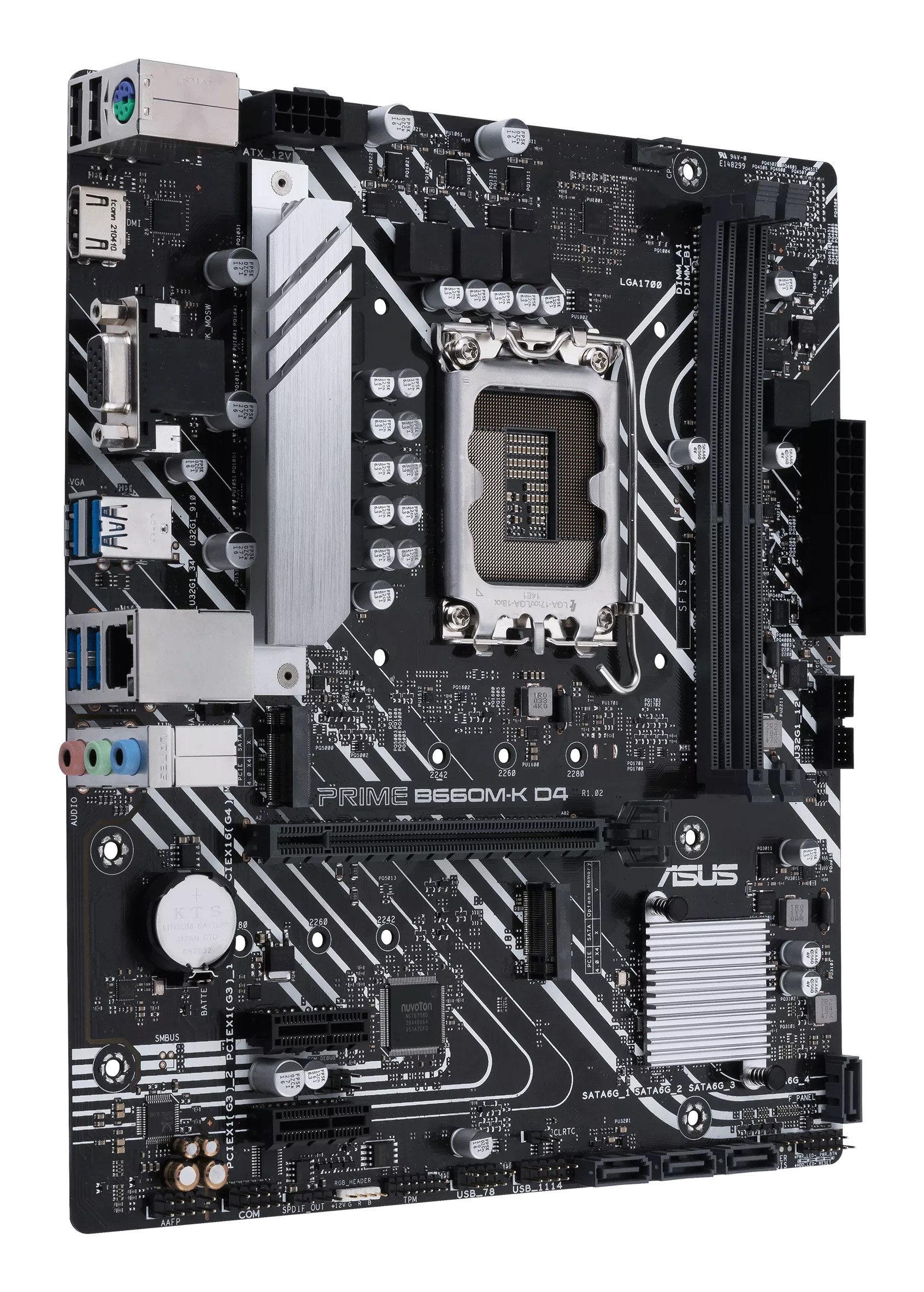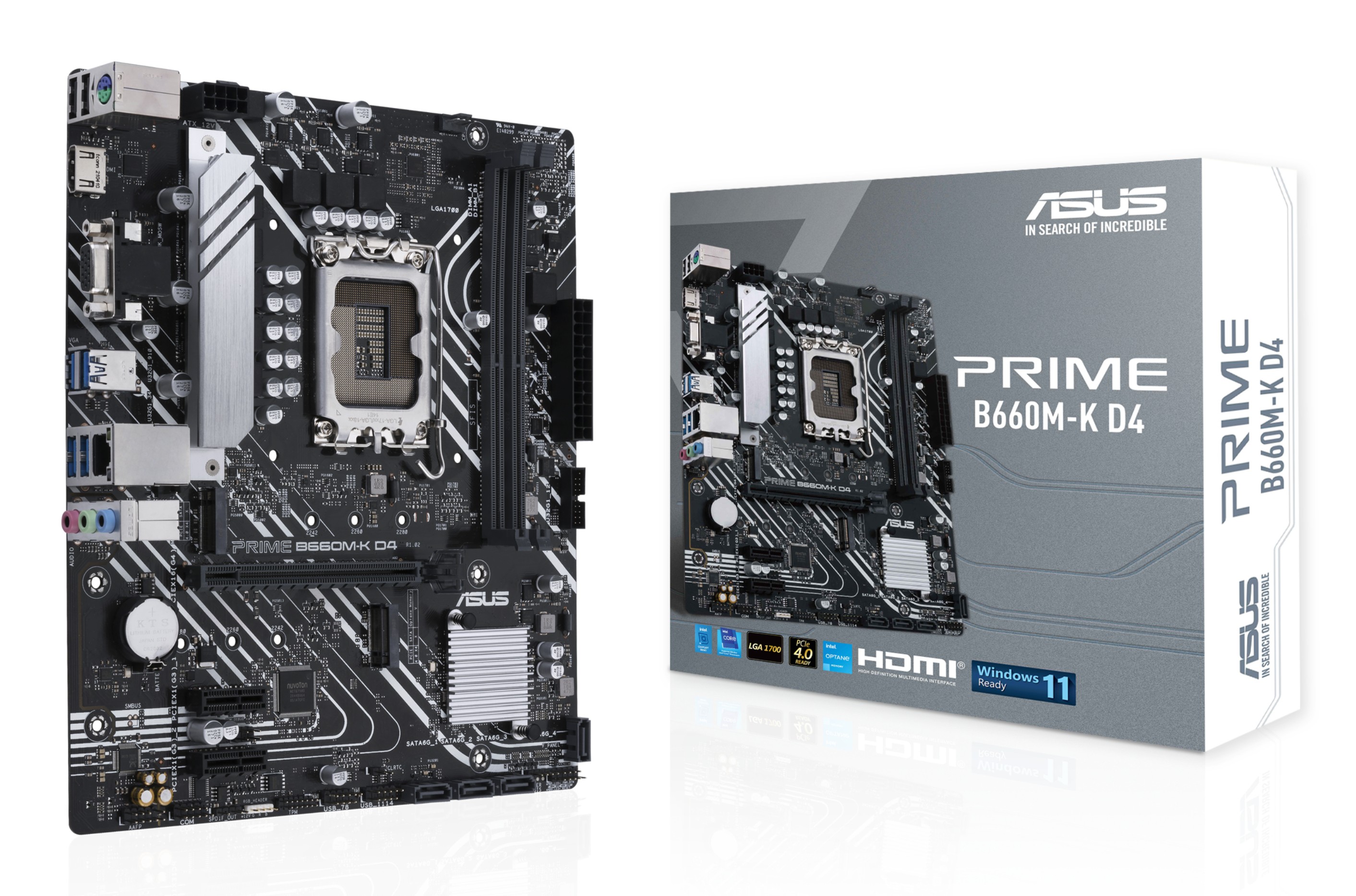 ASUS PRIME B660M-K D4, Intel, LGA 1700, Intel® Celeron®, Intel® Core™ i3, Intel® Core™ i5, Intel® Core™ i7, Intel® Core™ i9,..., LGA 1700, DDR4-SDRAM, 64 GB