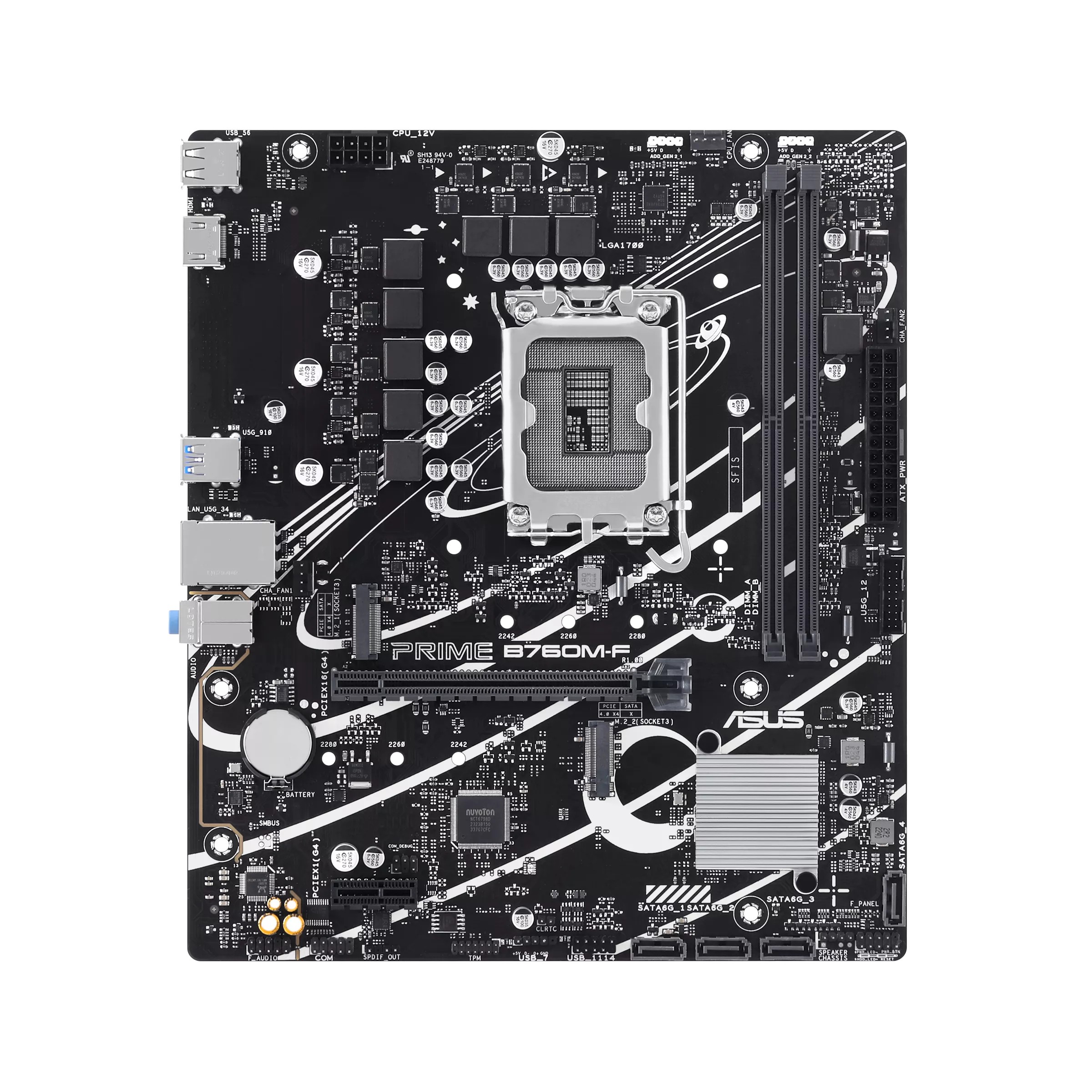 ASUS PRIME B760M-F, Intel, LGA 1700, Intel® Celeron®, Intel Core i3 13th Gen, Intel Core i3 14th Gen, Intel Core i5 13th Gen, Intel..., LGA 1700, DDR5-SDRAM, 96 GB