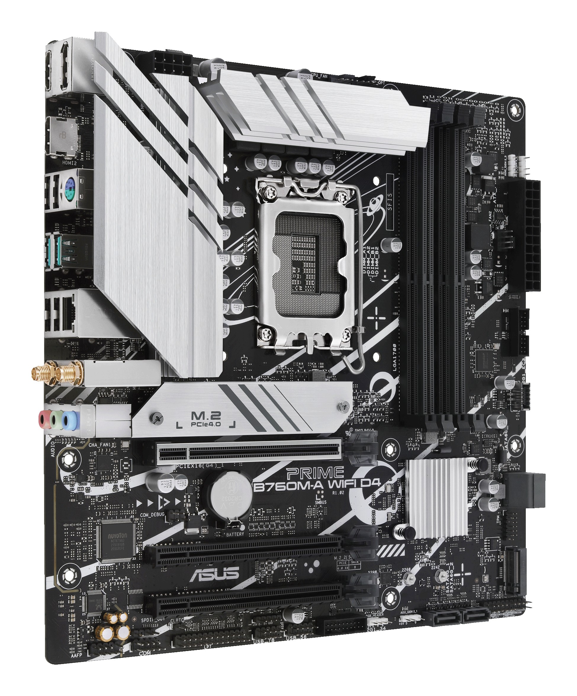 ASUS PRIME B760M-A WIFI D4, Intel, LGA 1700, Intel® Celeron®, Intel® Core™ i3, Intel® Core™ i5, Intel® Core™ i7, Intel® Core™ i9,..., LGA 1700, DDR4-SDRAM, 128 GB