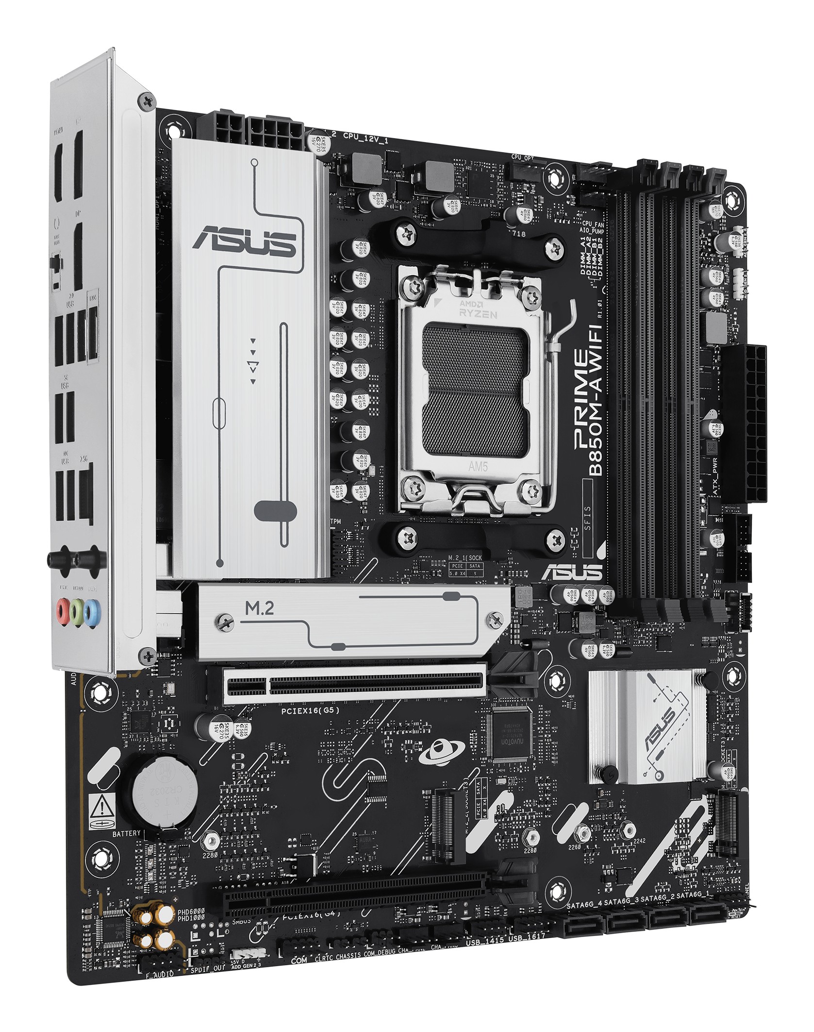 ASUS PRIME B850M-A WIFI, AMD, Socket AM5, AMD Ryzen 7000 Series, AMD Ryzen 8000 Series, AMD Ryzen 9000 Series, DDR5-SDRAM, 256 GB, DIMM