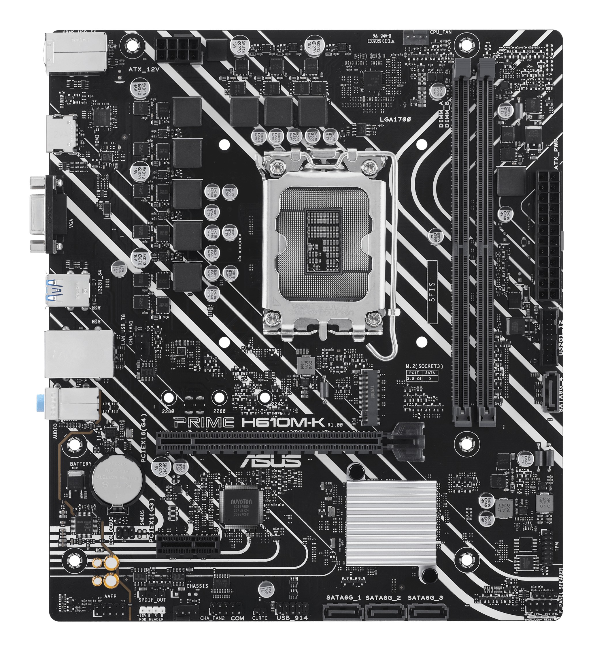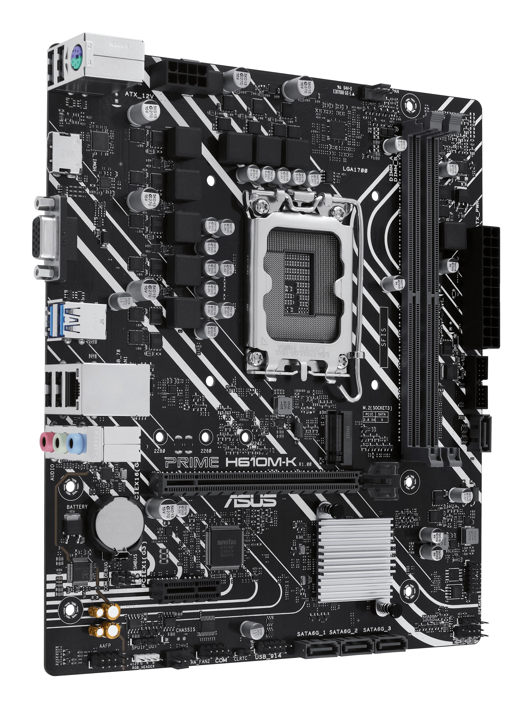 ASUS Prime H610M-K, Intel, LGA 1700, Intel® Celeron®, Intel® Core™ i3, Intel® Core™ i5, Intel® Core™ i7, Intel® Core™ i9,..., DDR5-SDRAM, 96 GB, DIMM