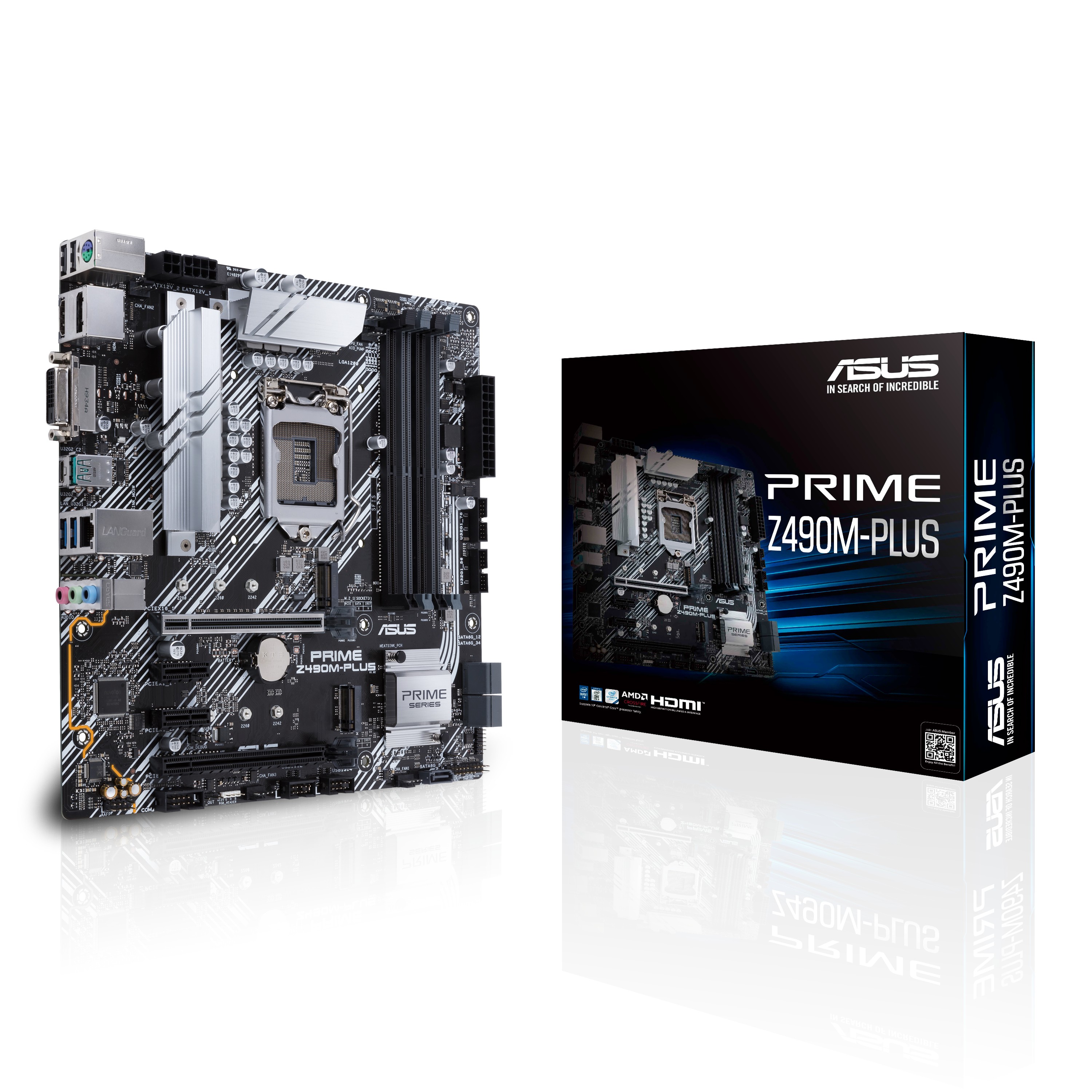 ASUS PRIME Z490M-PLUS, Intel, LGA 1200, Intel® Celeron®, Intel® Core™ i3, Intel Core i5, Intel Core i7, Intel Core i9, Intel® Pentium®, DDR4-SDRAM, DIMM, 2133,2400,2666,2800,2933,3000,3200,3300,3333,3400,3466,3600,3733,3866,4000,4133,4266,4400 MHz
