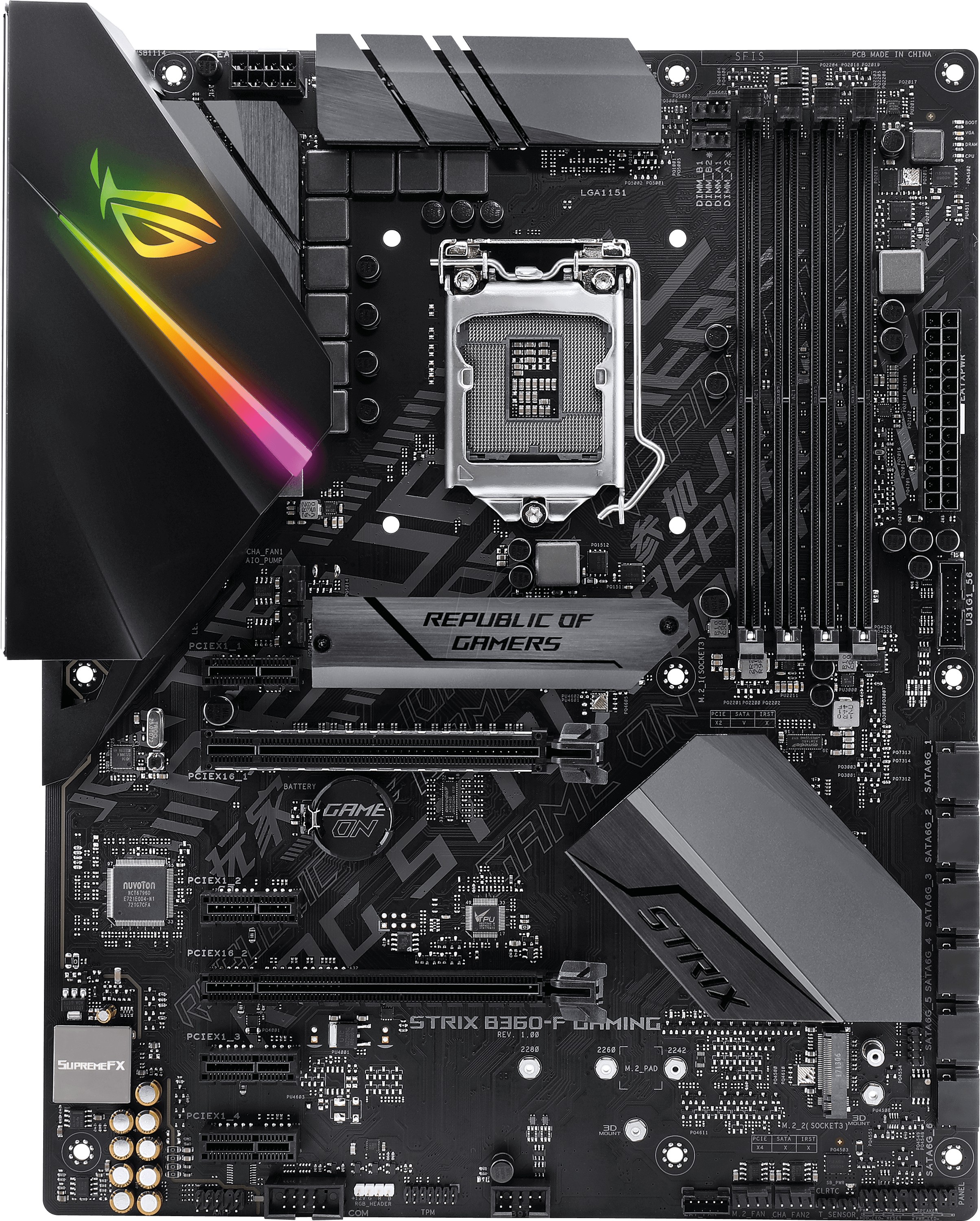 ASUS ROG STRIX B360-F GAMING, Intel, LGA 1151 (Presa H4), Intel® Core™ i3, Intel Core i5, Intel Core i7, i3-8xxx,i5-8xxx,i7-8xxx, DDR4-SDRAM, DIMM
