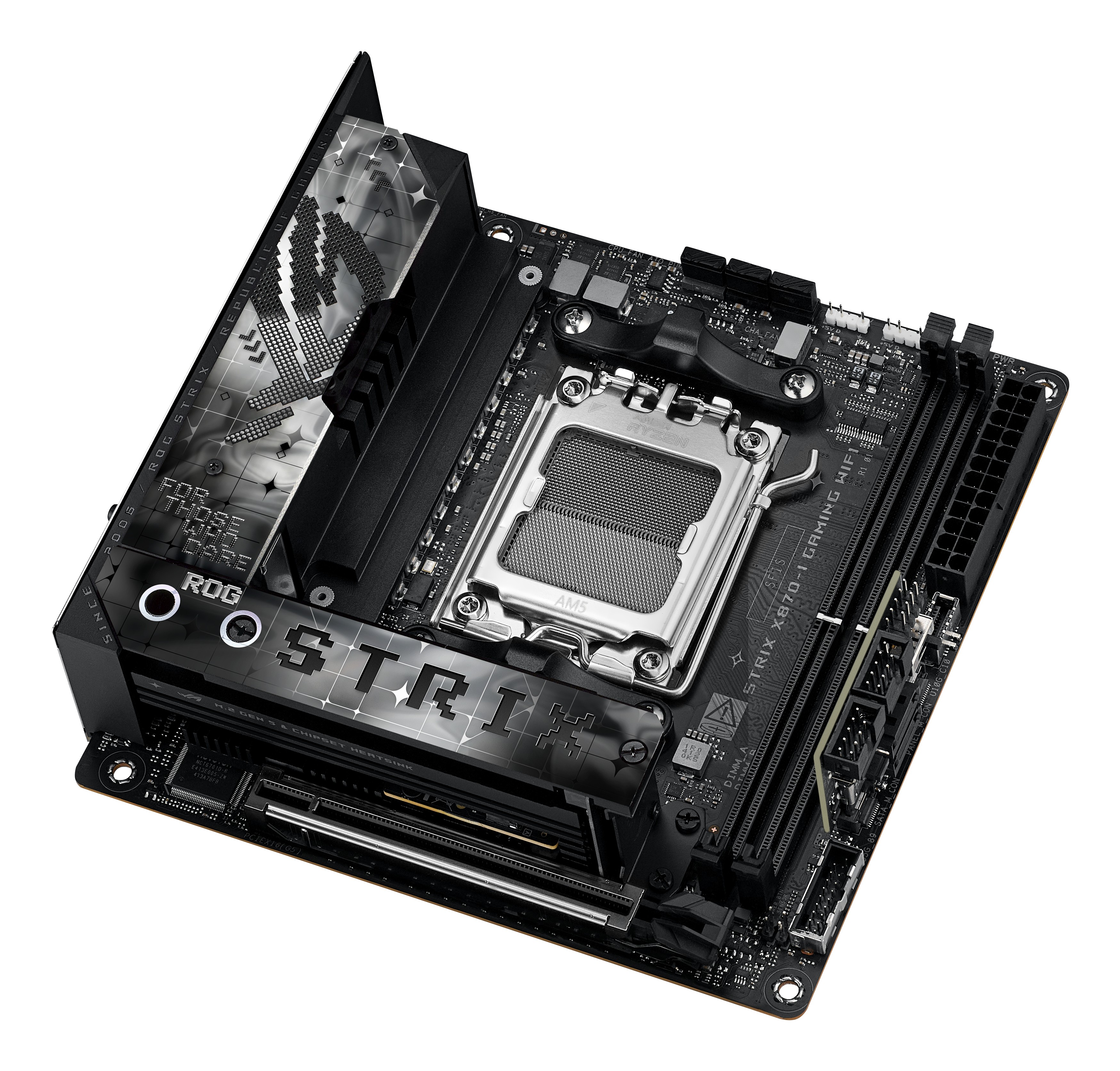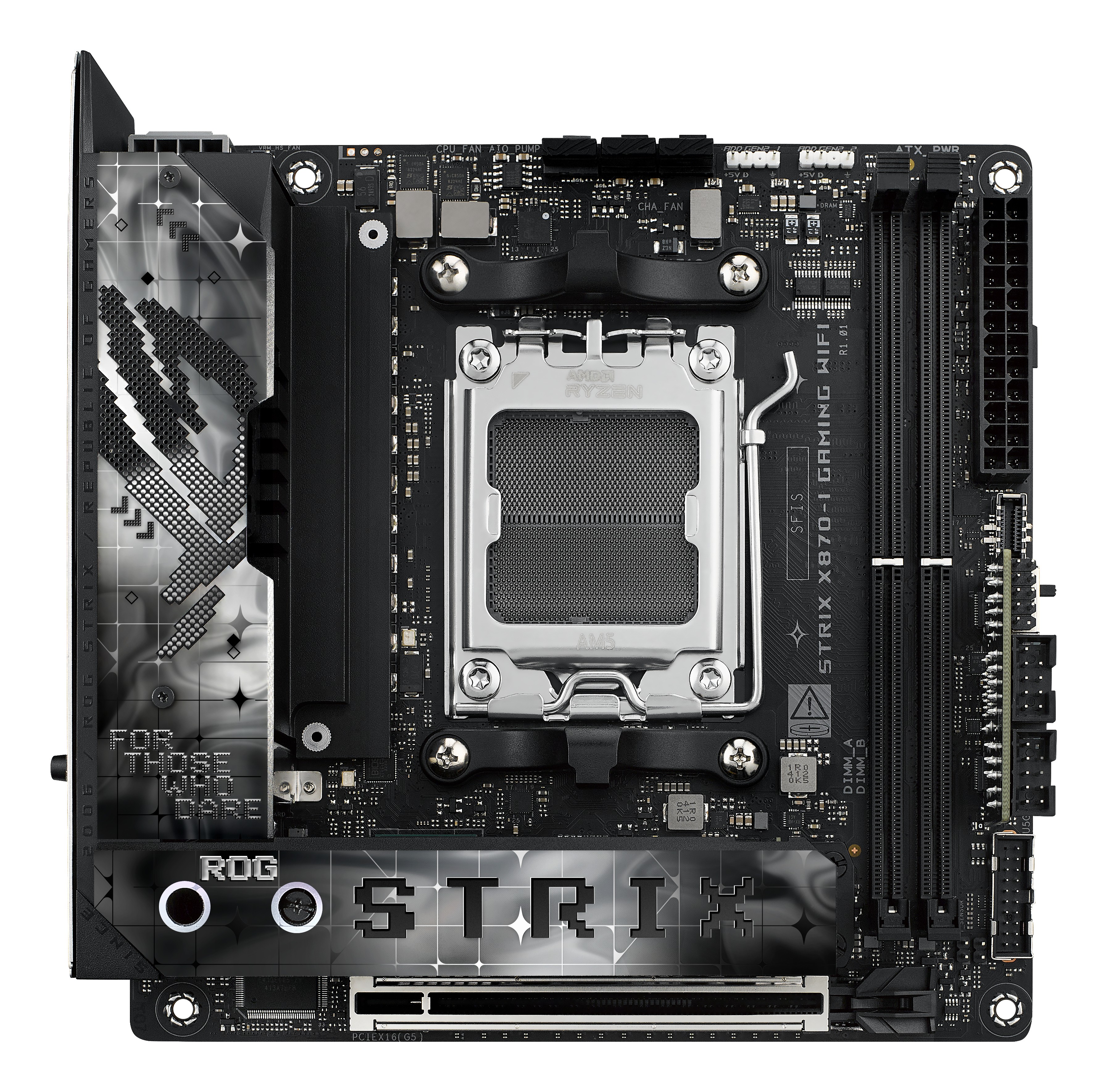 ASUS ROG STRIX X870-I GAMING WIFI, AMD, Socket AM5, AMD Ryzen 7000 Series, AMD Ryzen 8000 Series, AMD Ryzen 9000 Series, DDR5-SDRAM, 96 GB, DIMM