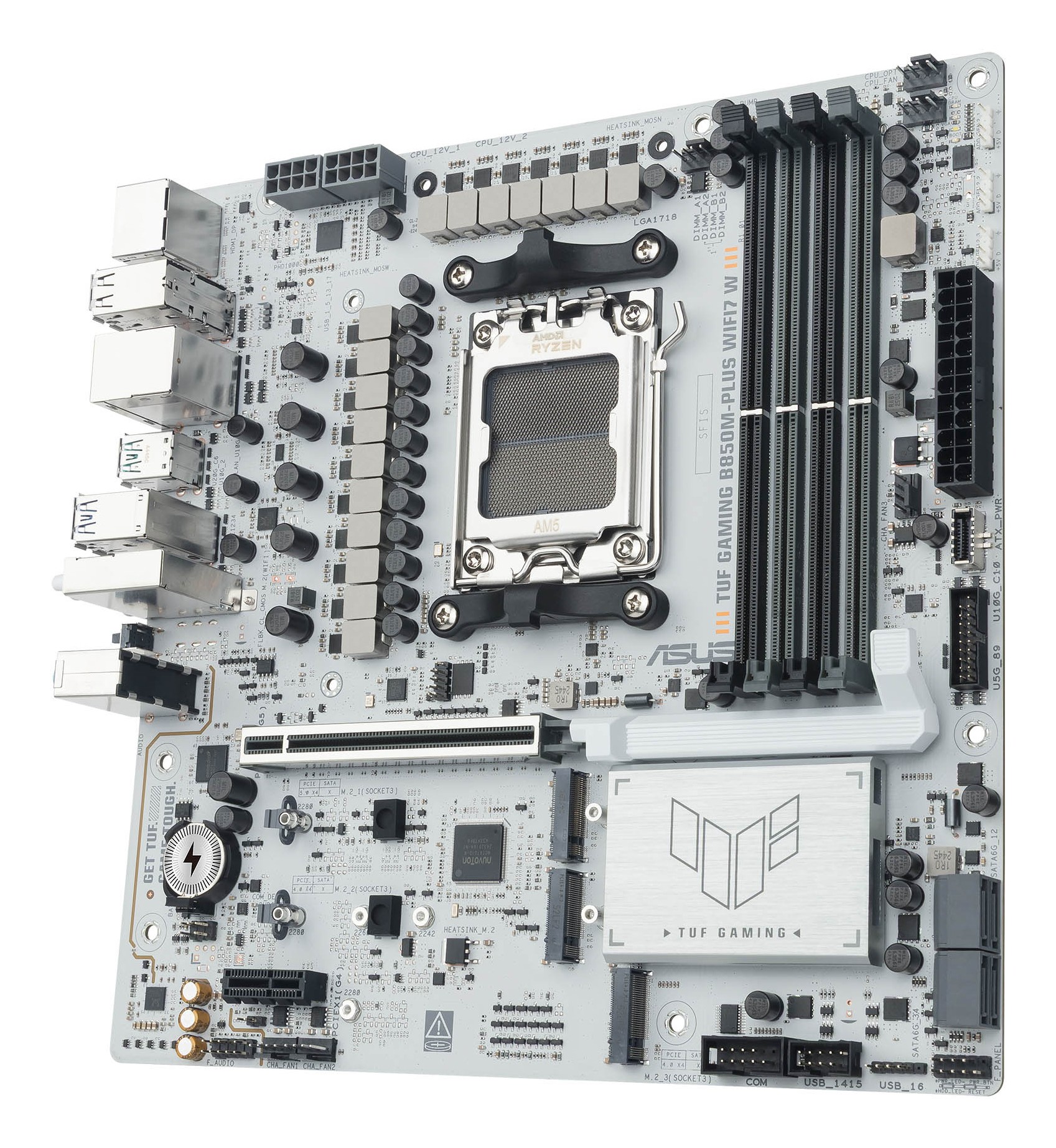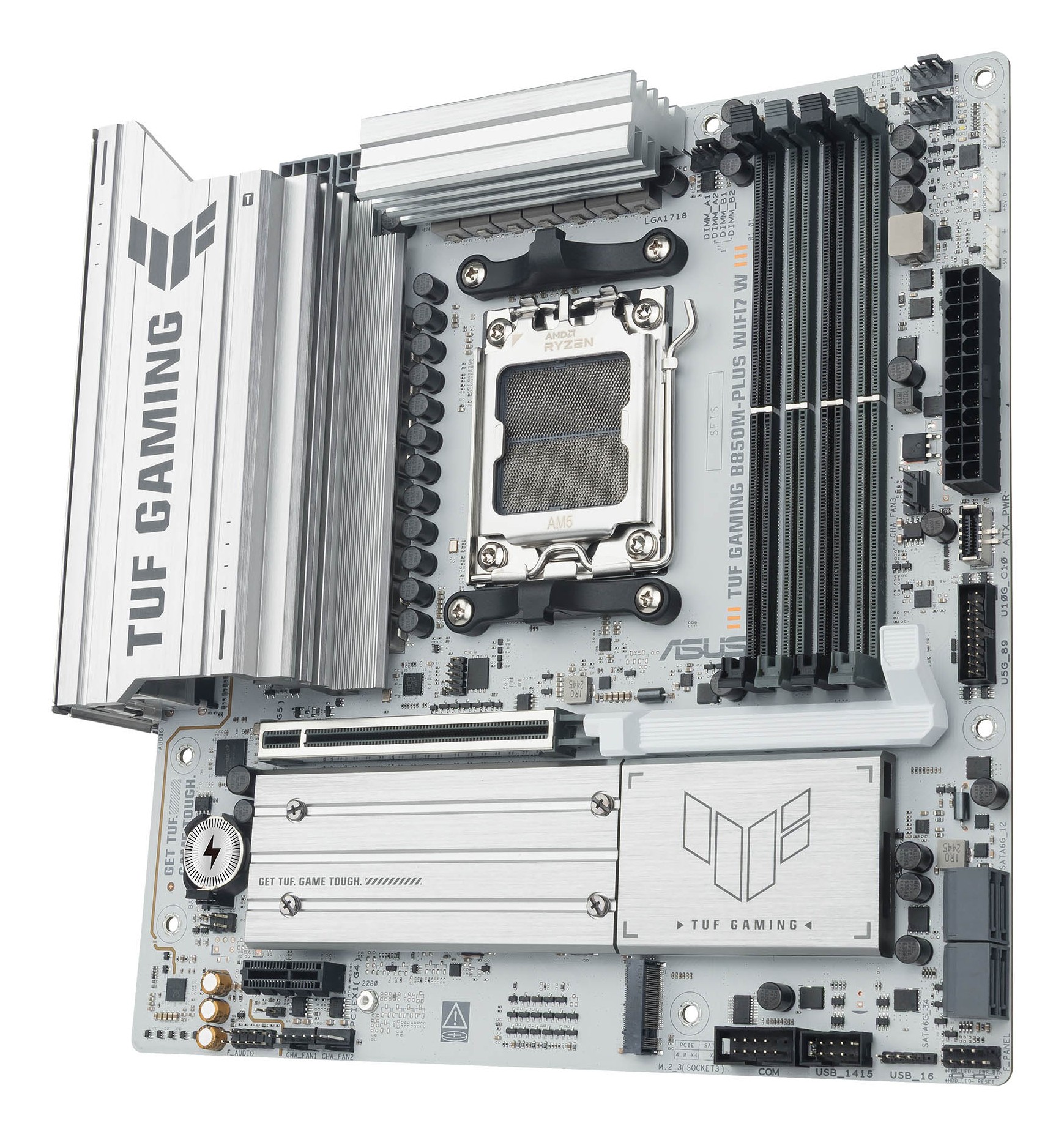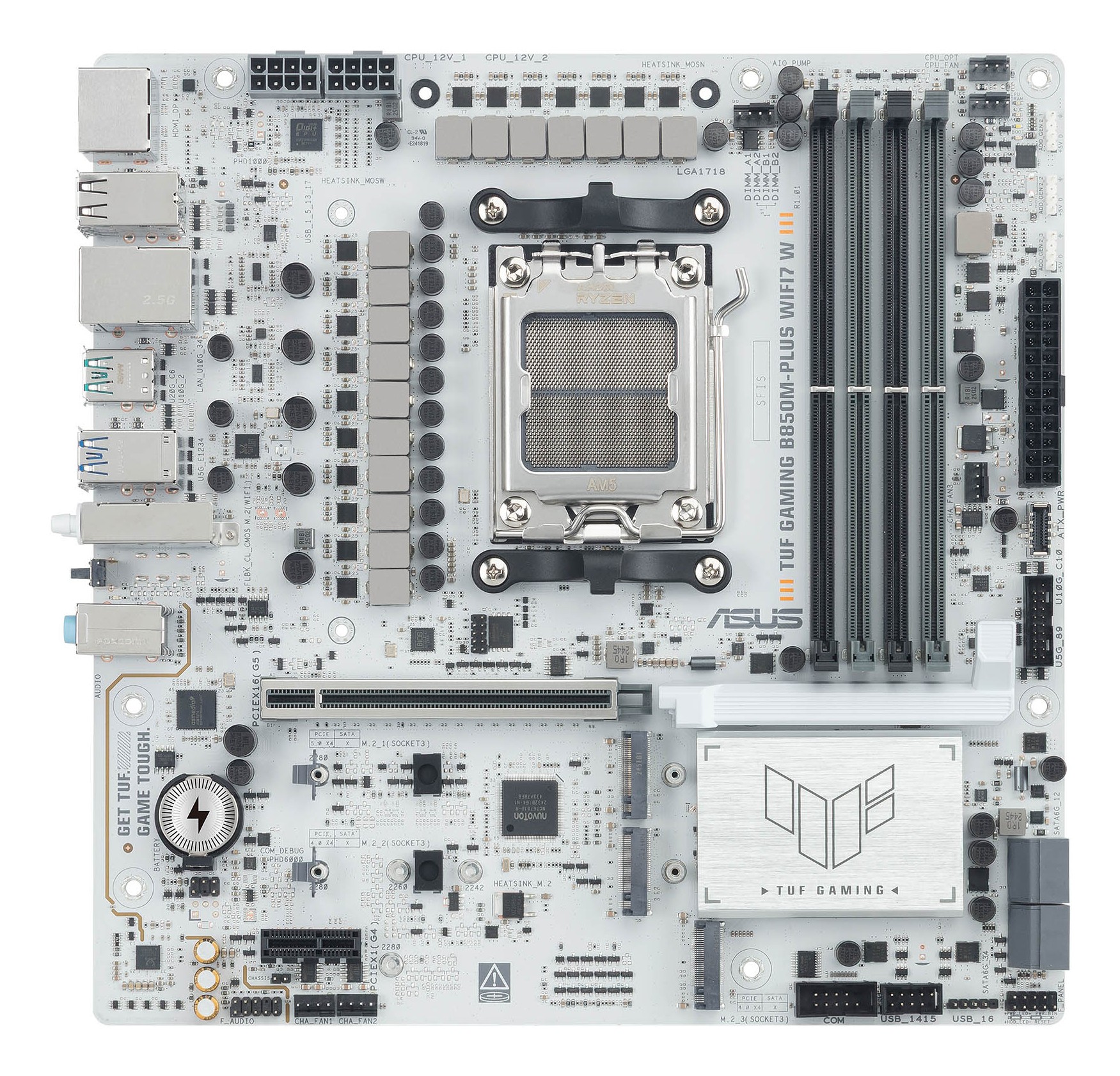 ASUS TUF GAMING B850M-PLUS WIFI7 W, AMD, Socket AM5, AMD Ryzen 7000 Series, AMD Ryzen 8000 Series, AMD Ryzen 9000 Series, Socket AM5, DDR5-SDRAM, 256 GB