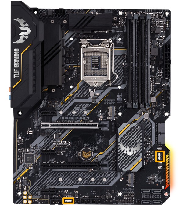 ASUS TUF GAMING B460-PLUS, Intel, LGA 1200, Intel® Celeron®, Intel® Core™ i3, Intel Core i5, Intel Core i7, Intel® Pentium®, DDR4-SDRAM, 128 GB, DIMM