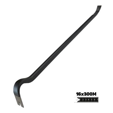 L'utensile è una leva con teste e chiodi forgiati, con la massima durezza e resistenza all'usura grazie al trattamento termico di rinvenimento. I chiodi sono progettati per ottimizzare lo sforzo e non si rompono né si deformano. Inoltre, ha una finitura con vernice a base d'acqua per prevenire la ruggine. La sua funzione principale è fornire leva e rimuovere il supporto della cassaforma. Le sue misure sono 300x16mm.