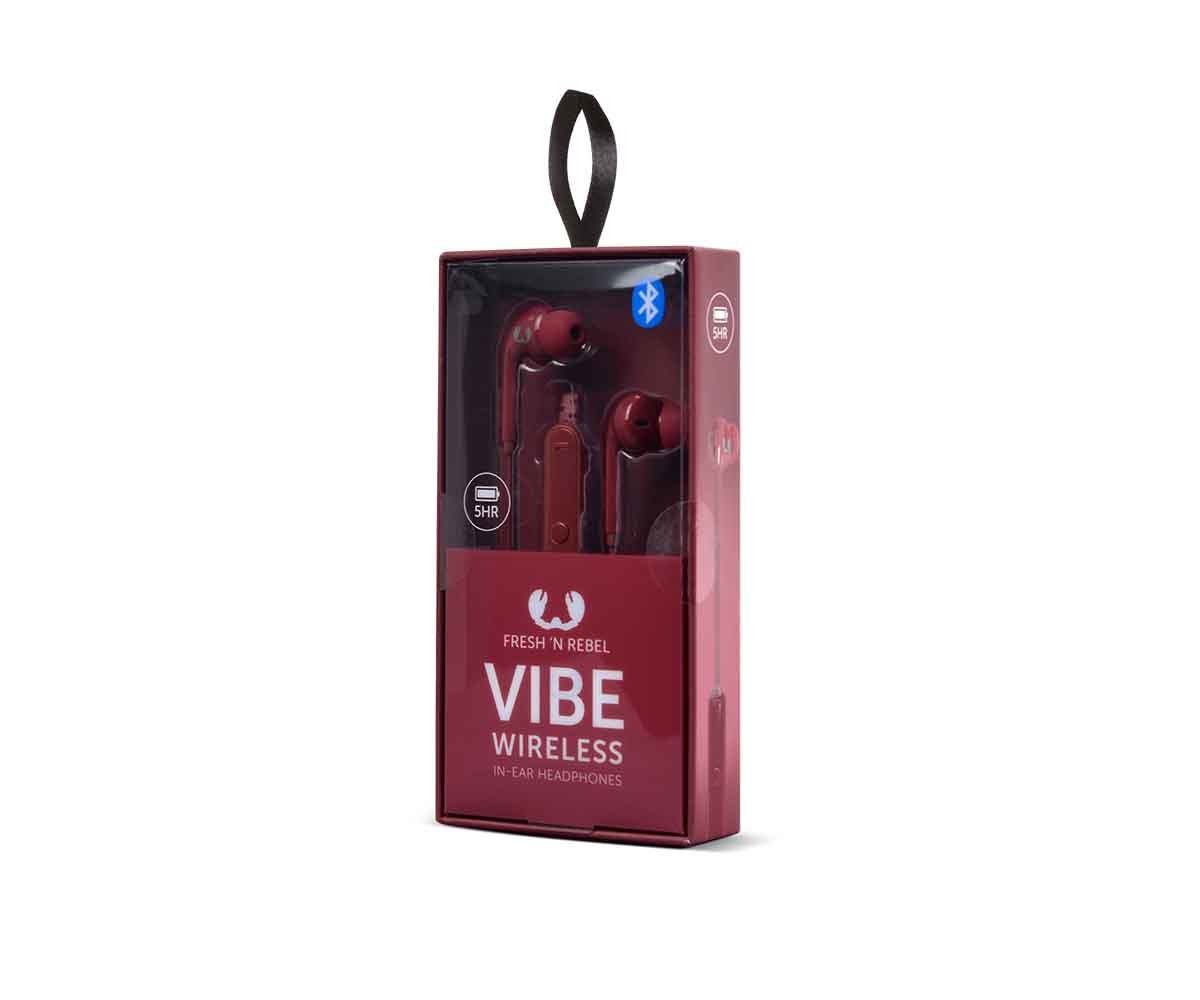 Fresh 'n Rebel Vibe Wireless cuffie auricolari Bluetooth per telefono cellulare Stereofonico rosso rubino. Tipo di prodotto: Auricolare. Tecnologia di connessione: Wireless, Bluetooth. Utilizzo raccomandato: Musica e Chiamate. Peso: 12 g. Colore del prodotto: Rosso