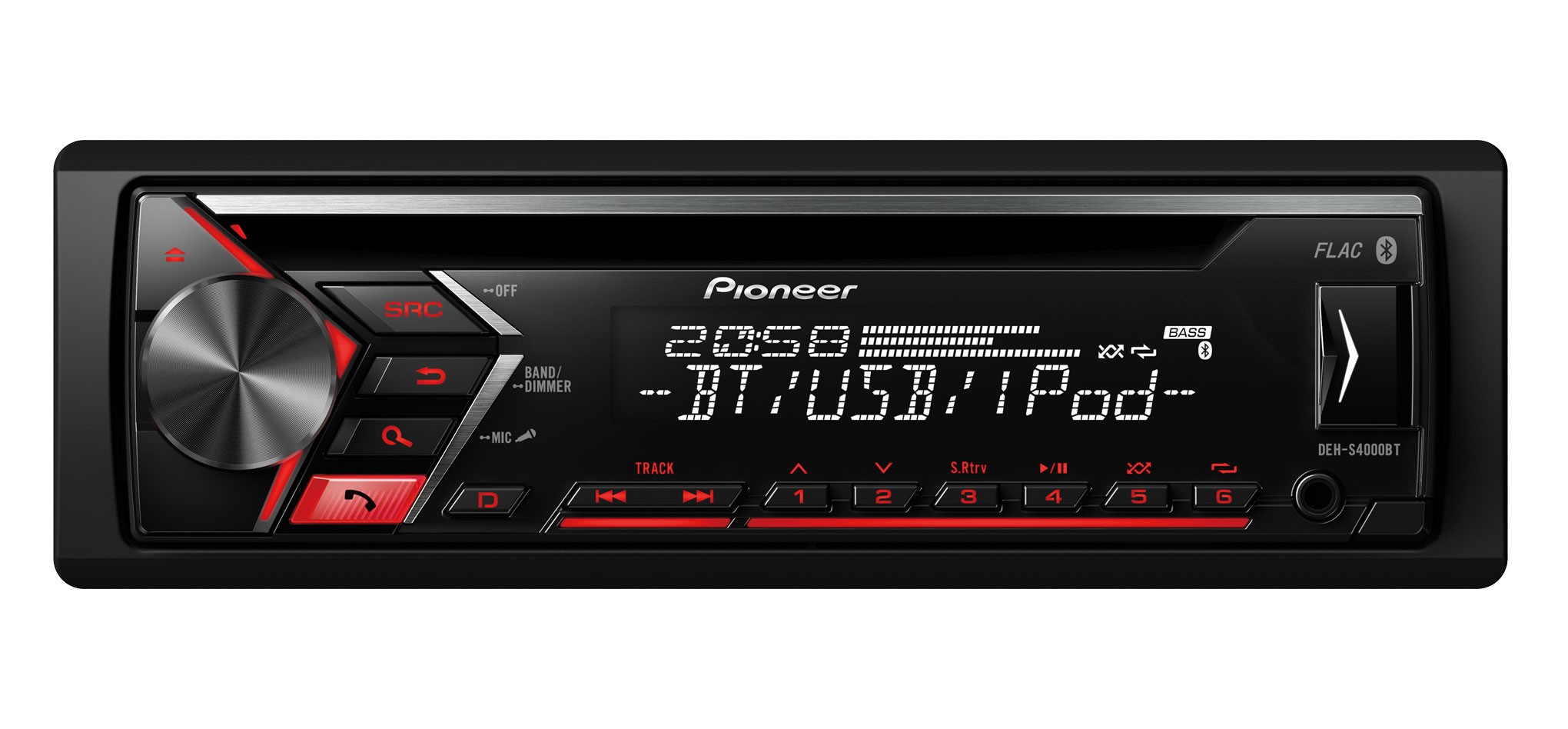 Pioneer DEH-S4000BT. Bande del sintonizzatore: AM,FM, Sistema audio: MOSFET. Righe di testo: 1 linee, Tipo di display: LCD. Colore del prodotto: Nero. Alimentazione massima per canale: 50 W. Formati audio supportati: AAC,FLAC,MP3,WAV,WMA