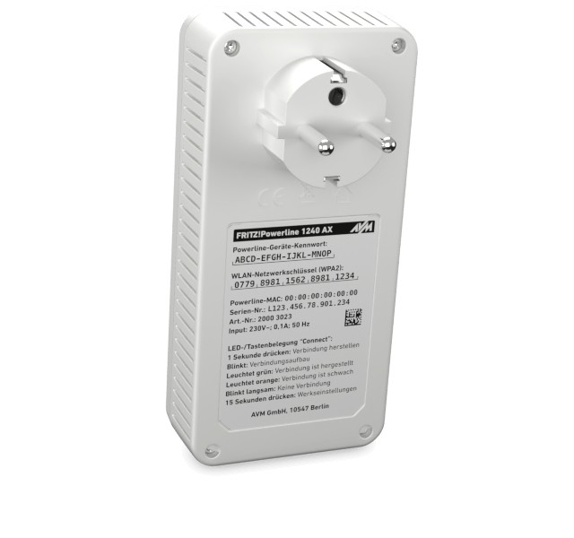 FRITZ!Powerline 1240 AX WLAN Set, 1200 Mbit/s, IEEE 802.11ac, Tipo F, Gigabit Ethernet, 10,100,1000 Mbit/s, Wi-Fi 6 (802.11ax)