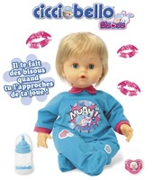 La bimba potrà immedesimarsi nel ruolo della mamma vivendo tutti i teneri momenti di coccole. Oltre a regalare tanti baci, Cicciobello, come un bimbo vero, è affamato e chiede il biberon bevendone il latte e vuole il suo ciuccio. Gli accessori sono nuovi e colorati: un ciuccio color rosso fragola con effetto glow in the dark e un biberon con il latte dallo stile rinnovato.