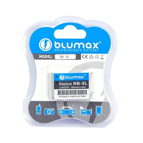 Blumax 850mAh Li-Ion. Tecnologia batteria: Ioni di Litio, Capacità della batteria: 850 mAh, Utilizzo: Macchina fotografica. Peso: 37 g. Tipo di imballo: Blister