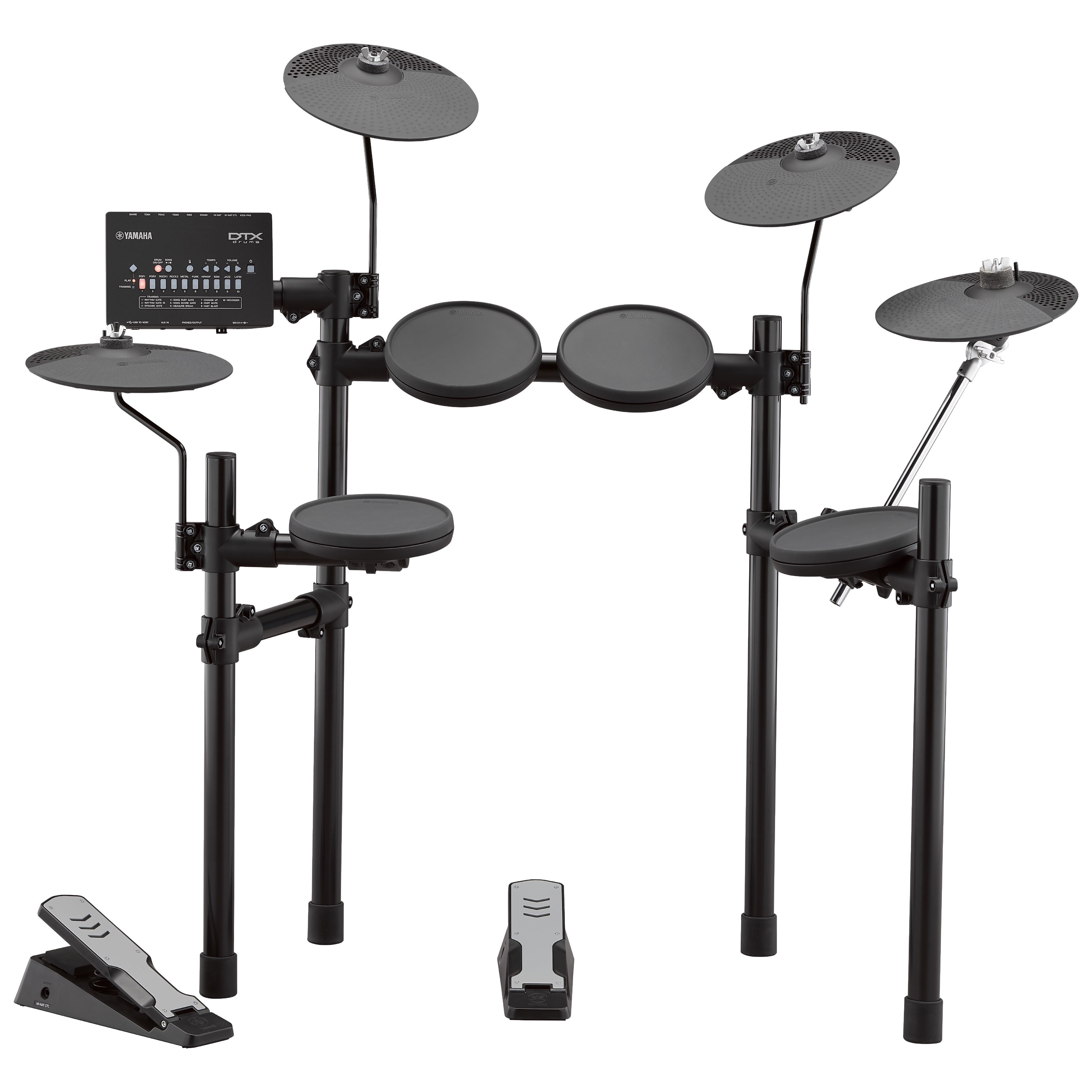 Yamaha DTX402K. Tipo: Sistema a tamburo. Tipi di suono del tamburo: Crash, Hi-hat, Kick, Andare in moto, Tamburo rullante, Tom, Connettore USB: USB di tipo B. Consumi: 5 W. Dimensioni del modulo sonoro (L x P x A): 269 x 39 x 147 mm, Peso del modulo sonoro: 500 g
