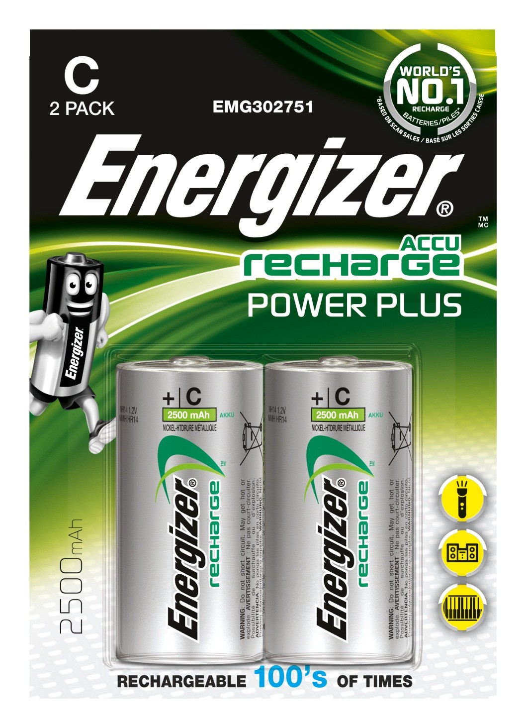 Energizer ENRC2500P2. Tipo batteria: Batteria ricaricabile, Numero di batterie incluse: 2 pz, Capacità della batteria: 2500 mAh