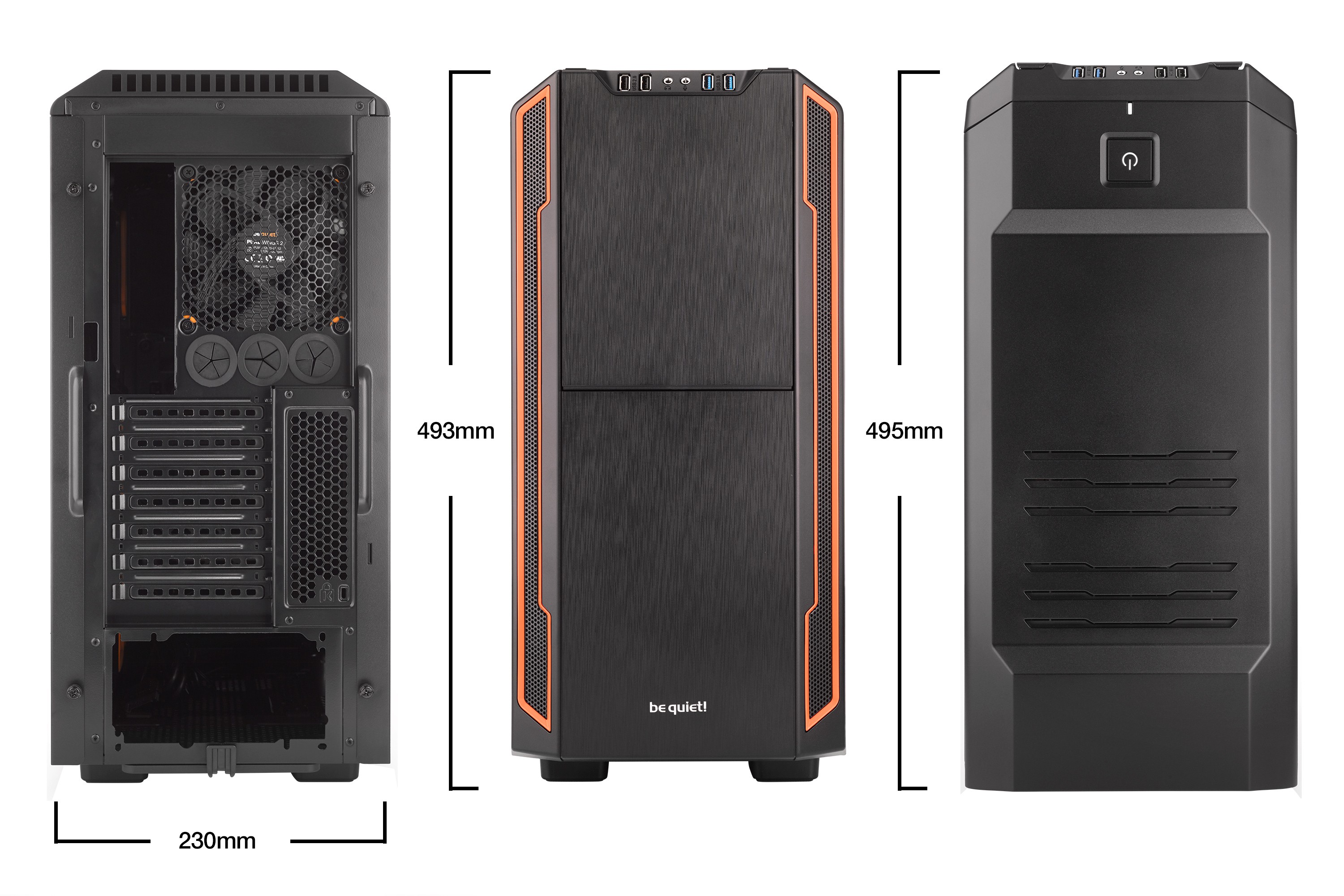 be quiet! Silent Base 600. Fattore di forma: Midi Tower, Tipo: PC, Colore del prodotto: Arancione, Nero. Posizione alimentazione: Fondo. Ventole anteriori installate: 1x 140 mm, Diametro delle ventole frontali supportato: 140 mm, Diametro delle ventole laterali supportato: 120 mm. Dimensioni di hard disk drive supportati: 2.5,3.5". Larghezza: 230 mm, Profondità: 495 mm, Altezza: 493 mm