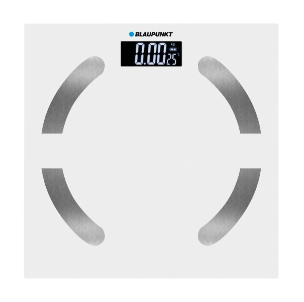 La bilancia pesapersone Blaupunkt BP5009 combina un design ultrasottile con vetro temperato e acciaio inossidabile per fornire una superficie stabile che supporta fino a 180 kg.