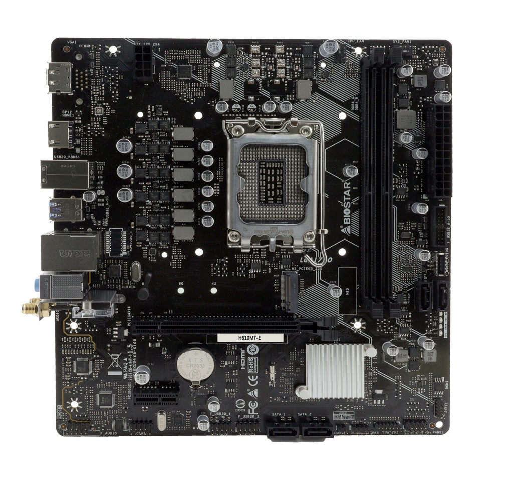 Biostar H610MT-E, Intel, LGA 1700, Intel® Celeron®, Intel Core i3 12th Gen, Intel Core i3 13th Gen, Intel Core i5 12th Gen, Intel..., DDR4-SDRAM, 64 GB, DIMM