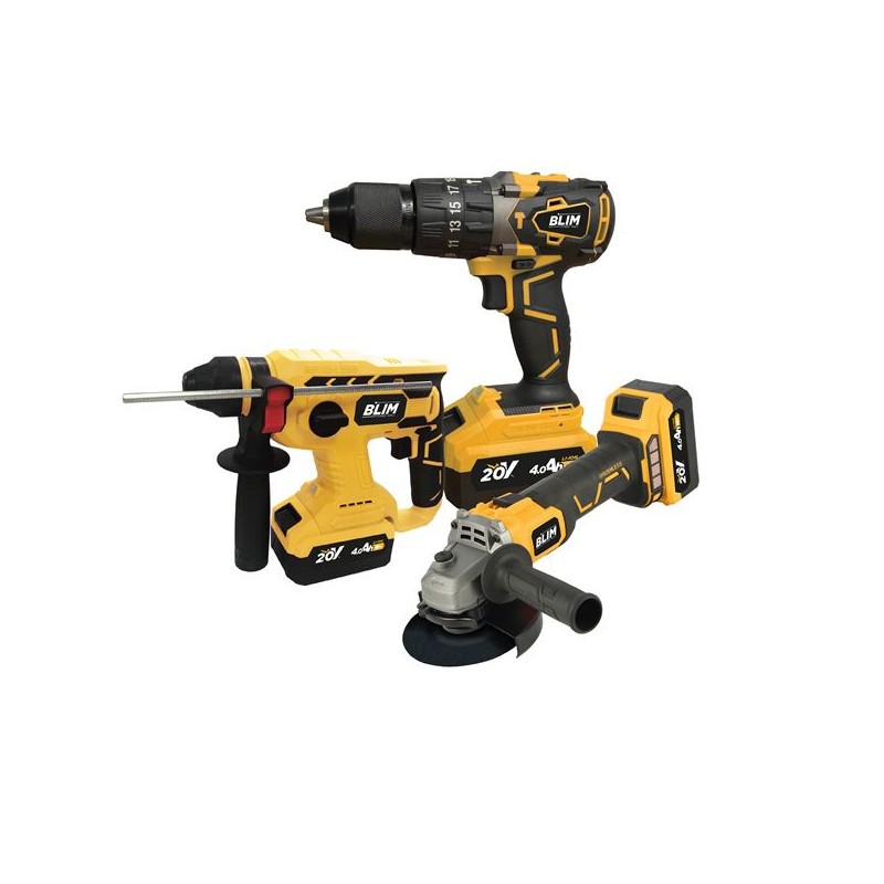 Recensioni Blim Radial Pacco batterie 115mm 20V 4Ah + Trapano a percussione 20V 4Ah + Trapano a percussione 20V 4Ah - Impugnatura ergonomica - Include 2 batterie e custodia per il trasporto