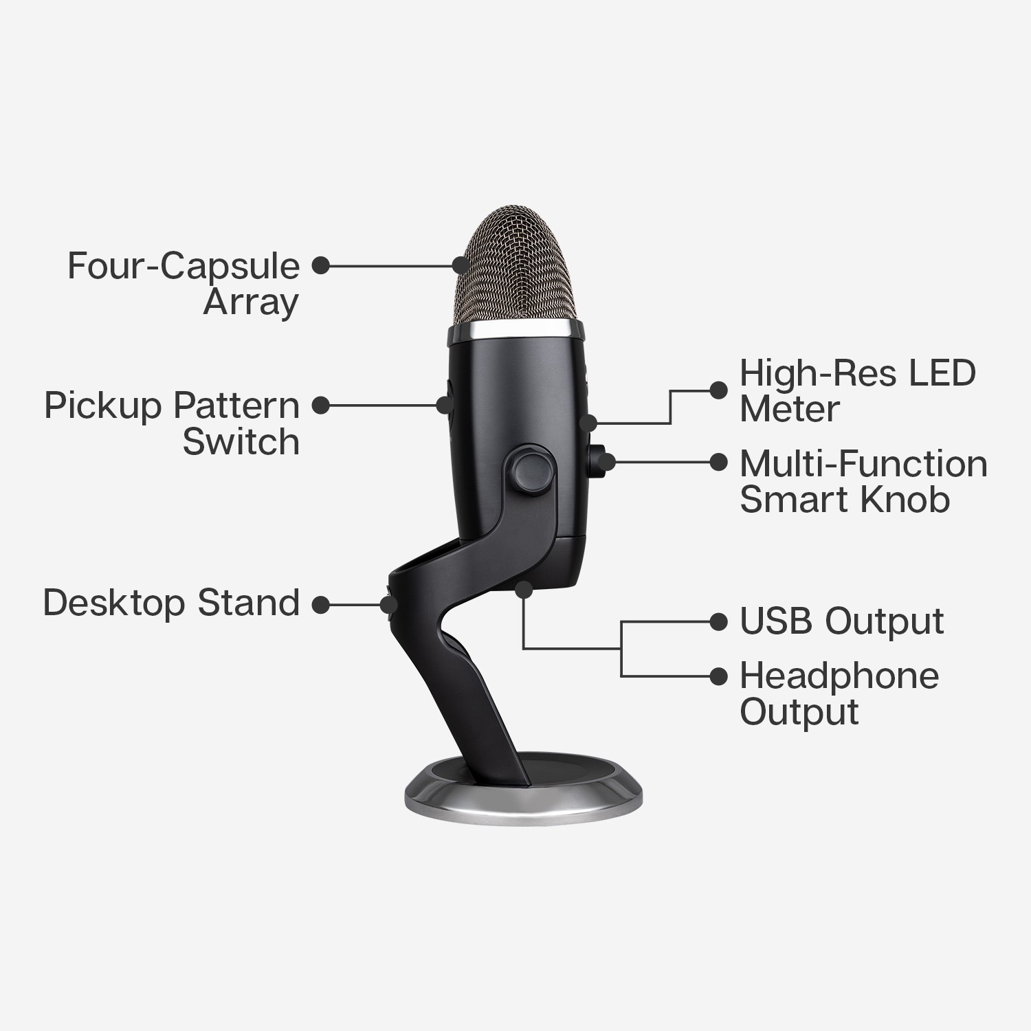 Blue Microphones Yeti X, Microfono da tavolo, 20 - 20000 Hz, 24 bit, 48 kHz, 100 dB, 122 dB