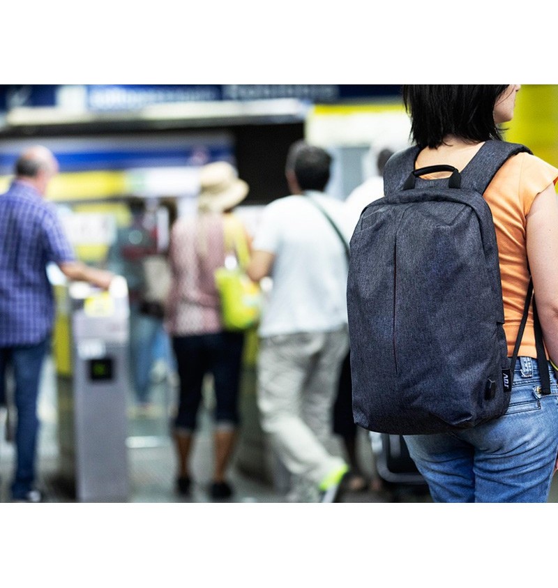Sherlock Secure Backpack ADJ per Notebook 13,3” / 15.6” - Dotato di sistema antifurto di chiusura: le 2 zip sono impossibili da aprire se non ci si toglie lo zaino - Provvisto di tasca interna con cavo USB integrato per collegare un power bank e caricare i tuoi dispositivi - Colore Grigio