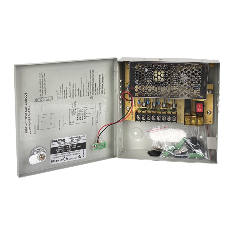 Box Alimentatore Stabilizzato Centralizzato Vultech CM-05A-4CH 12V 5A 4 Canali - - Esseshop