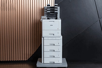 HL-L9430CDN offre un'ampia gamma di funzioni professionali per la massima efficienza. Sia che necessiti di una mailbox o di un fascicolatore con pinzatura automatica dei documenti per ordinare i documenti stampati, la stampante può essere facilmente personalizzata per migliorare la produttività aziendale. Puoi anche aumentare la capacità della carta grazie ai vassoi aggiuntivi.