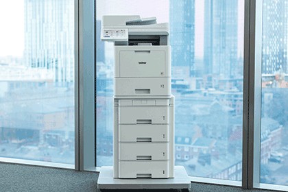 Progettato per adattarsi allo spazio di lavoro e soddisfare requisiti di stampa e scansione specifici, MFC-L9630CDN è disponibile come stampante da tavolo e può essere trasformato in un modello in configurazione full ad alta efficienza aggiungendo semplicemente vassoi per la carta e mobiletto opzionali.