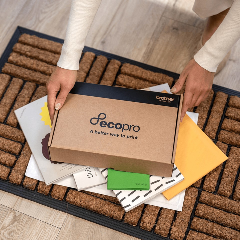 EcoPro è il servizio di stampa flessibile che ti consegna le cartucce originali Brother direttamente a casa. Scegli il piano in base alle tue esigenze di stampa e non preoccuparti più di rimanere senza inchiostro. Con EcoPro riceverai gratuitamente le cartucce solo quando l'inchiostro sta per esaurirsi e non dovrai preoccuparti di nulla perché sarà la tua stampante Brother a inviarci una notifica in modo da inviarti le nuove cartucce.