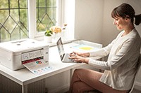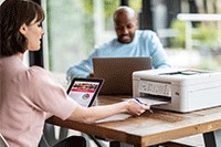 Non è necessario trovarsi nelle vicinanze della macchina per completare le attività. Non importa in quale zona della casa vi troviate, è possibile rimanere connessi all'MFC-J1010DW tramite la connettività wireless. Inoltre, scaricando Brother Mobile Connect è possibile eseguire una serie di attività, quali la stampa di documenti, il controllo dei livelli di inchiostro, la revisione di documenti acquisiti in precedenza e molto altro ancora.